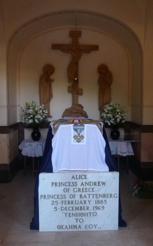 Возложив цветы на раку и поставив свечу, принц Уильям направился к раке преподобномученицы Варвары. Здесь архимандрит Роман рассказал об обстоятельствах мученической кончины преподобномучениц и князей, пострадавших с ними в Алапаевске, о добрых делах и милосердии Императрицы Александры Феодоровны, ее дочерей и сестры, истории и святынях храма, деятельности монастыря, миссии и Вифанской школы. Затем принц Уильям посетил усыпальницу своей прабабушки греческой принцессы Алисы, которая, согласно ее завещанию, была похоронена рядом со своей тетей по матери, преподобномученицей Елизаветой. И тут архимандрит Роман совершил заупокойную литию на английском языке, после чего принцу Уильяму была дана возможность помолиться здесь в одиночестве. Затем продолжилось общение принца Уильяма с начальником, настоятельницей, сестрами обители и ученицами Вифанской школы.