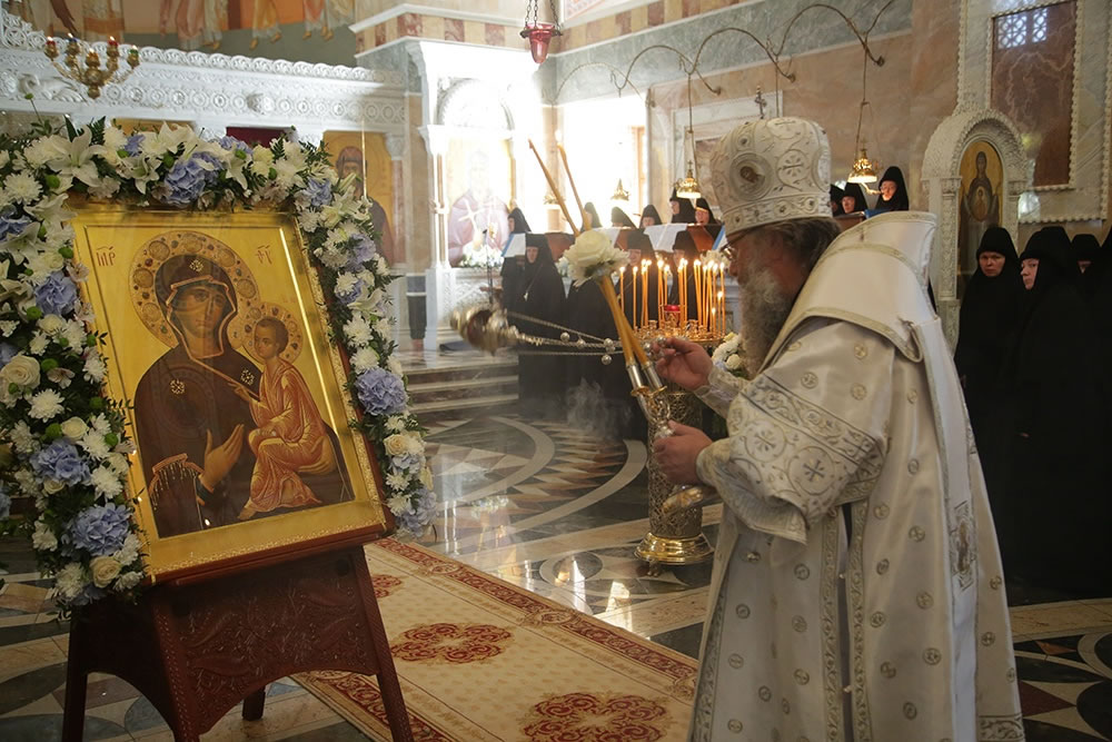 А мы сегодня здесь в этом святом монастыре с любовью и благодарением Богу преклоняемся перед Пресвятой Богородицей, перед ее образом, именуемым «Тихвинским», просим и молим вновь и вновь за наш город, за нашу страну, за нашу землю, чтобы Матерь Божия молилась за нас, предстательствовала за нас, помогала нам, утешала нас.