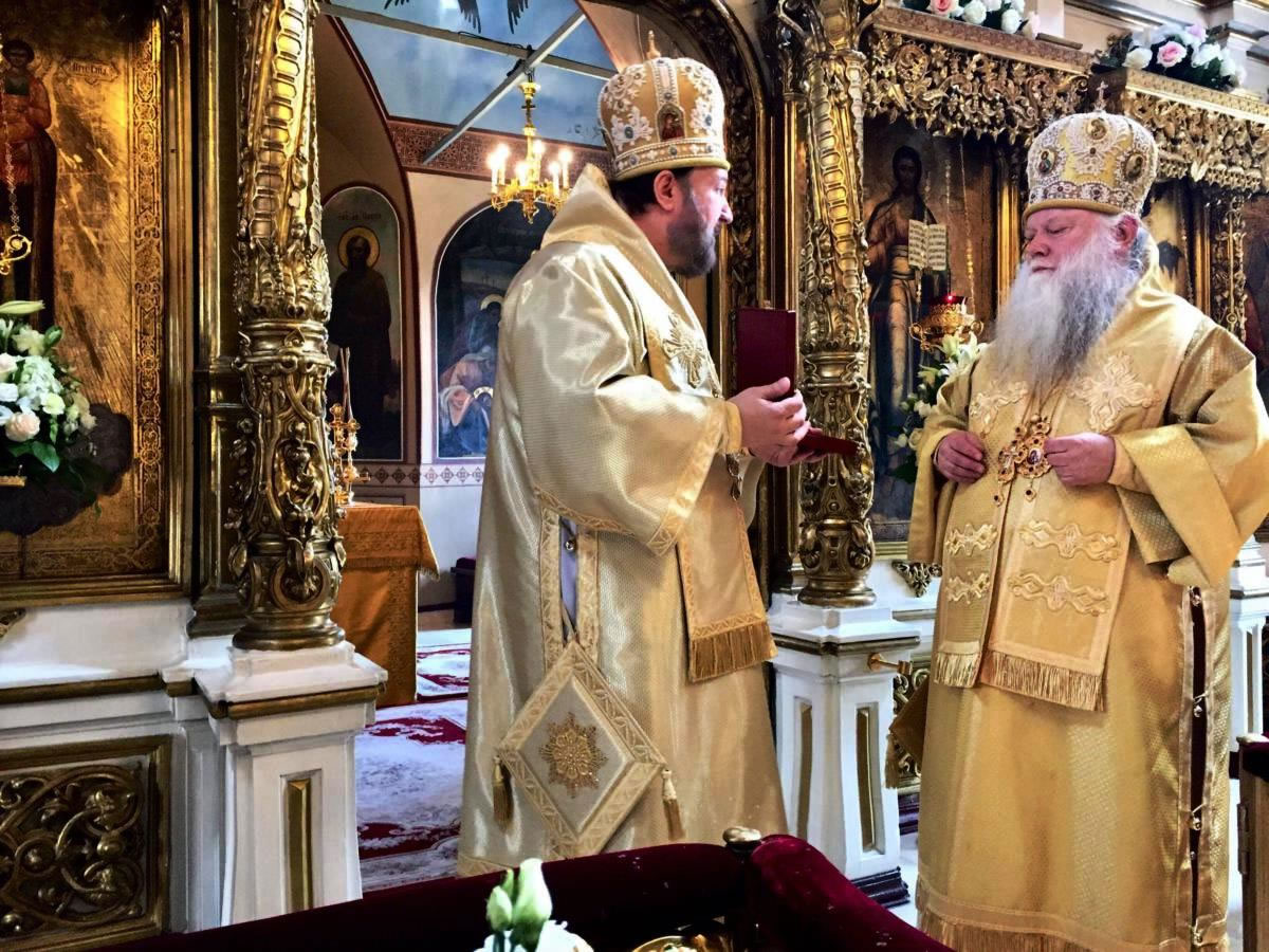 По окончании богослужения епископ Моравичский Антоний обратился ко всем собравшимся со словами поздравления по случаю престольного праздника – дня памяти святых первоверховных апостолов Петра и Павла. Владыка поздравил архиепископа Чикагского и Средне-Американского Петра с 15-летием архиерейской хиротонии и преподнес ему на молитвенную память святую панагию и вышитую икону святых апостолов Петра и Павла.