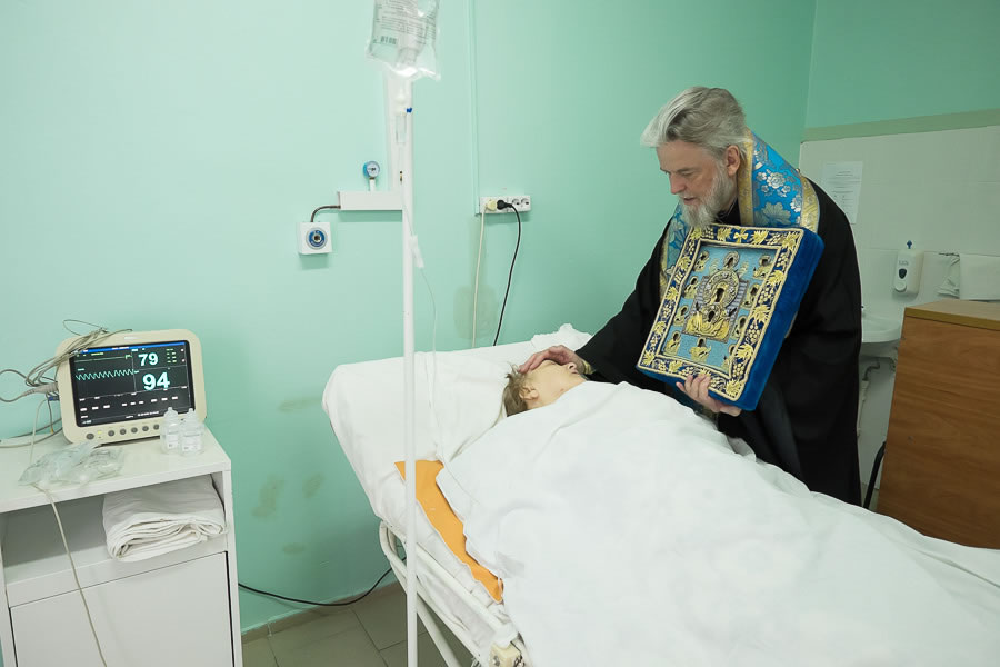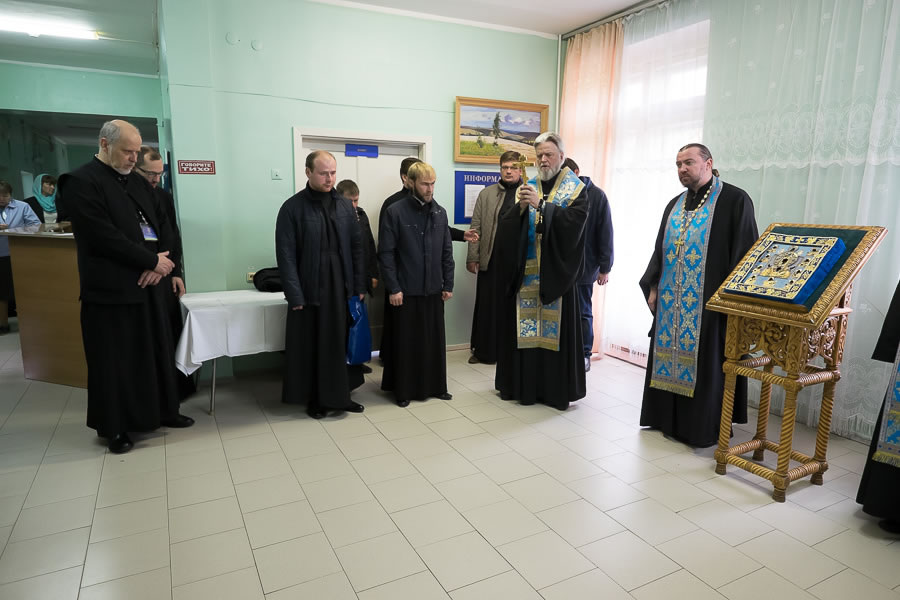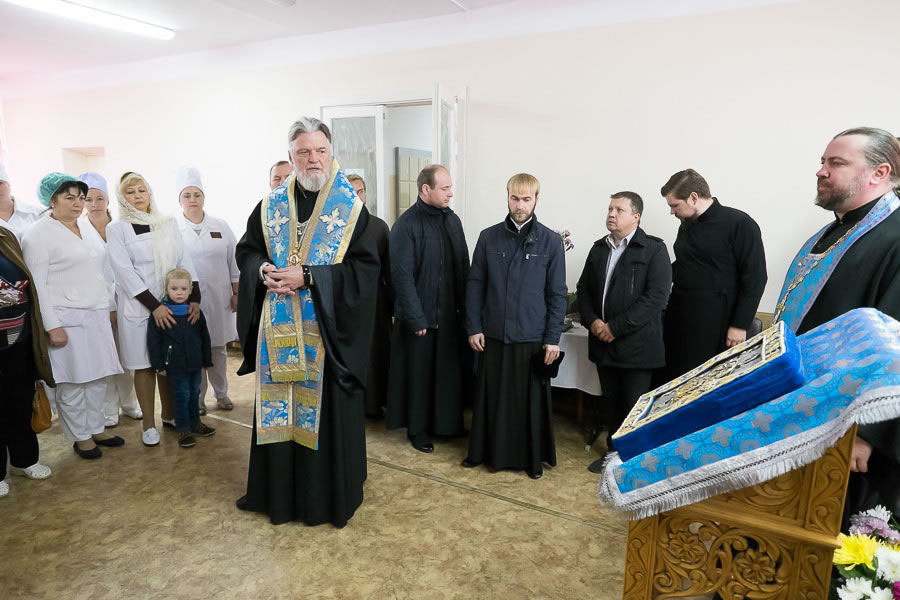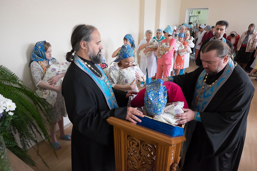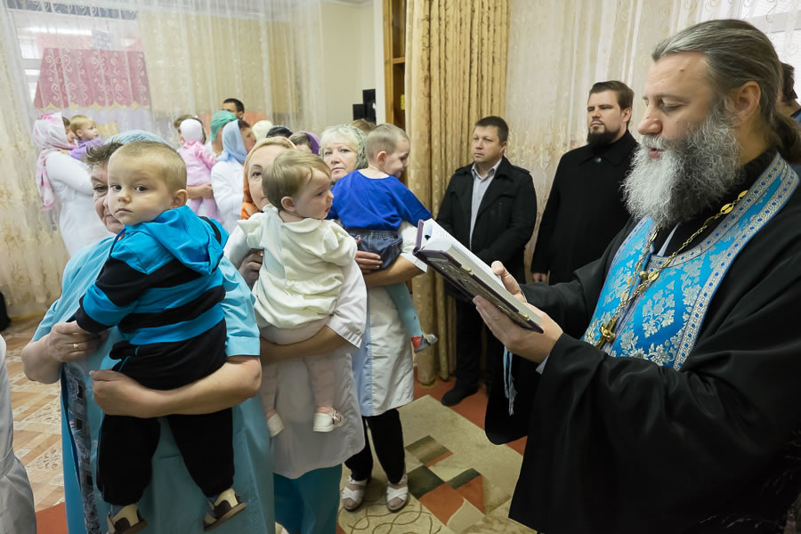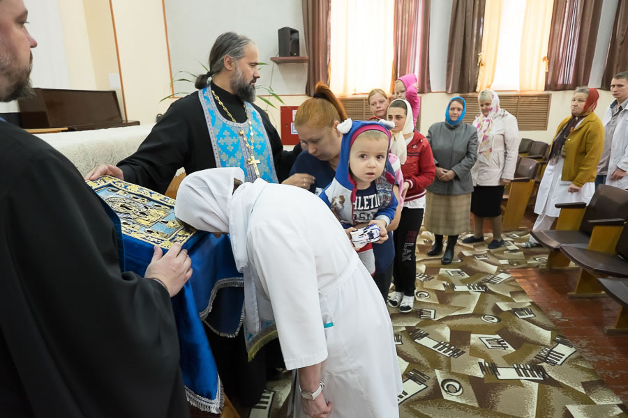 Затем чудотворная икона была принесена в Областной специализированный Дом ребенка. Во время совершения молебна Божией Матери сотрудники Дома ребенка подносили и подводили детей приложиться к иконе. По окончании молебна протоиерей Александр Лобанов посетил с чудотворным образом палату с тяжелобольными детьми.