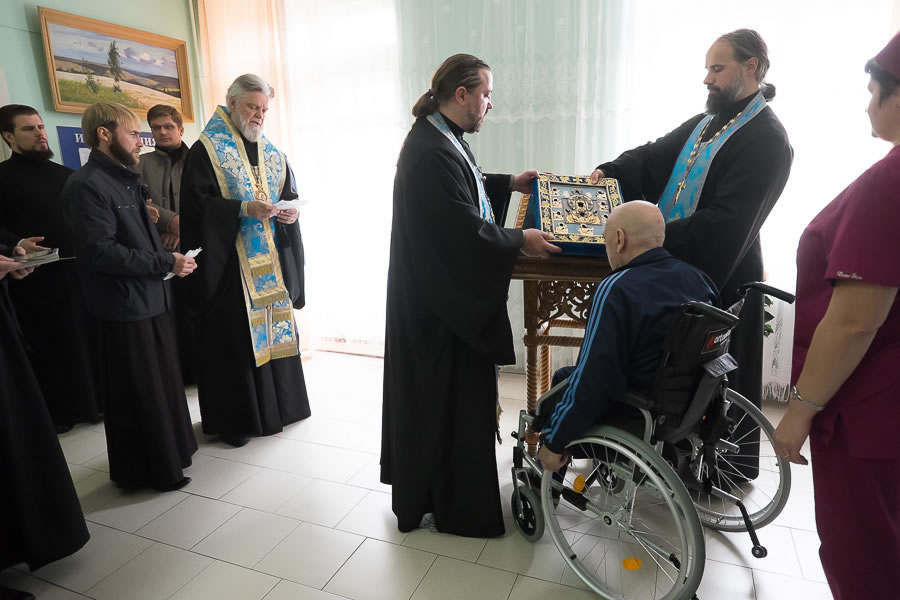 Впервые в этом году святыне смогли поклониться в стенах Курского дома-интерната ветеранов войны и труда. Священники, сопровождающие чудотворную икону, прошли по комнатам социального учреждения со слабыми и ослаблеными проживающими, дав им возможность приложиться к святыне.