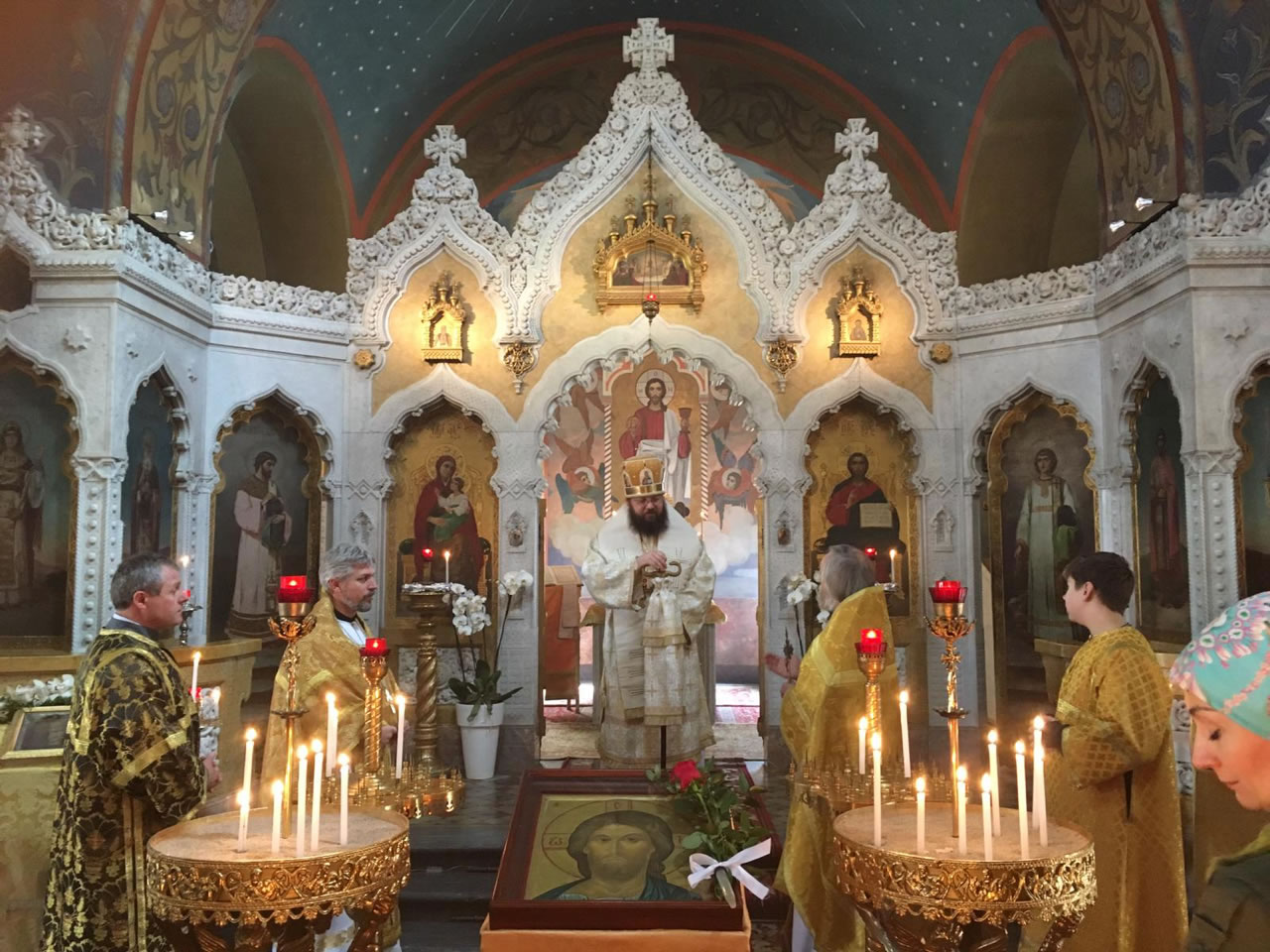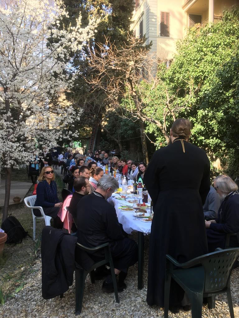 Во Флоренции Преосвященнейшего епископа Иринея встретили протоиерей Георгий Блатинский, священник Олег Тюркан, а также староста и другие члены прихода. В Родительскую субботу, а также в воскресенье – Неделю о Страшном суде - Его Преосвященство возглавил богослужения в сослужении местного духовенства. Во время чтения часов перед воскресной литургией епископ Ириней поставил Юрия Горчака во чтеца ддя несения своего церковного служения на приходе, а на Малом входе наградил священника Олега правом ношения набедренника. Между богослужениями в субботу и воскресенье был устроен специальный обед по случаю собрания приходского совета, на котором совет приветствовал епископа и воспользовался возможностью для знакомства и обсуждения духовных вопросов. Епископ Ириней также общался с регентом хора и певчими, чье великолепное пение за богослужениями Его Преосвященство не раз отмечал. В понедельник вечером в храме состоялся специальный концерт, устроенный в честь архипастыря.