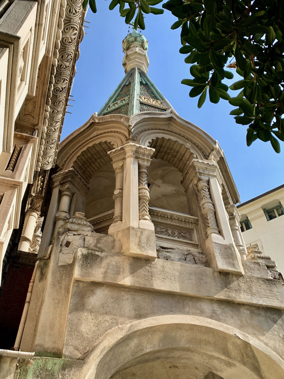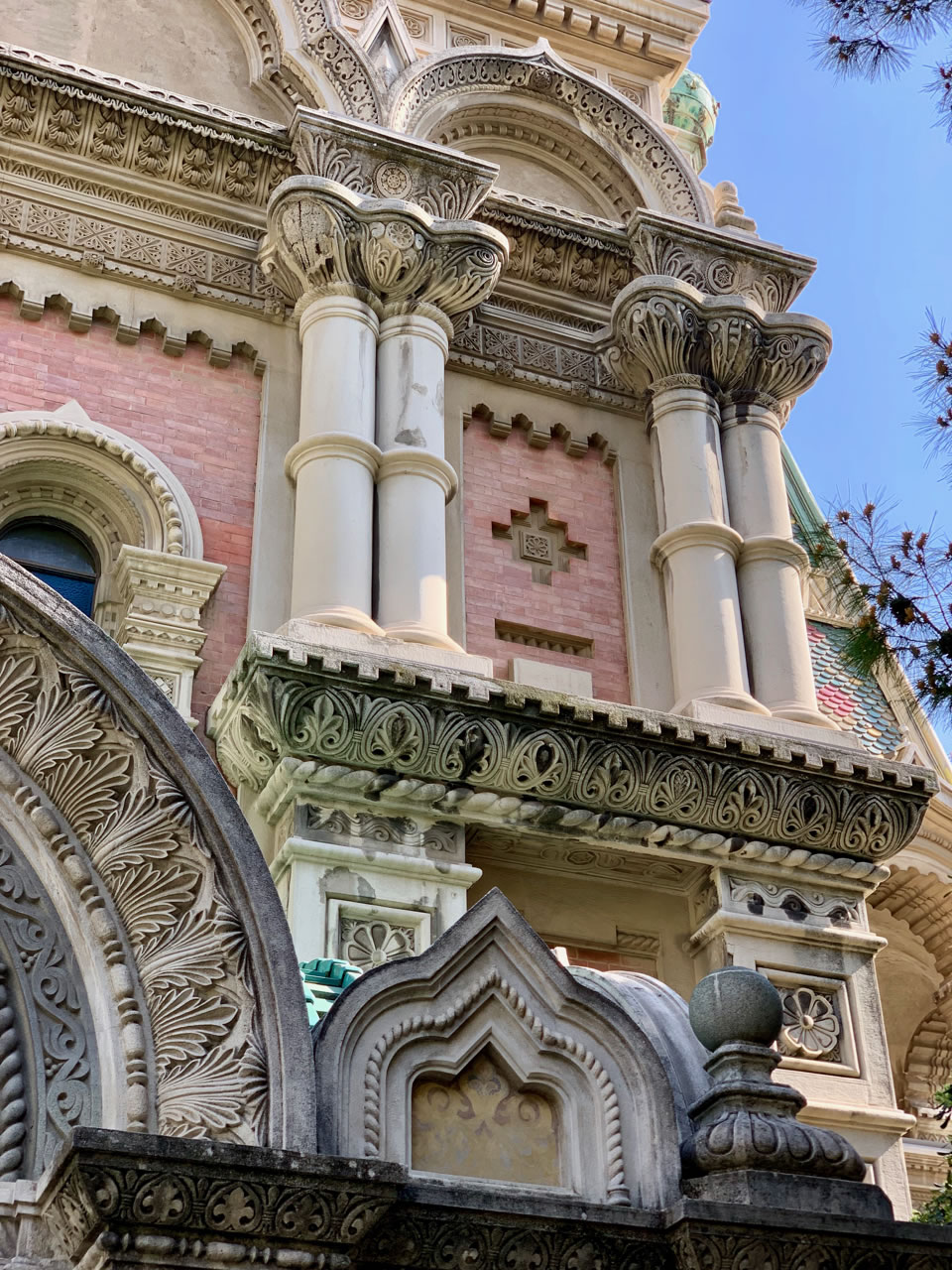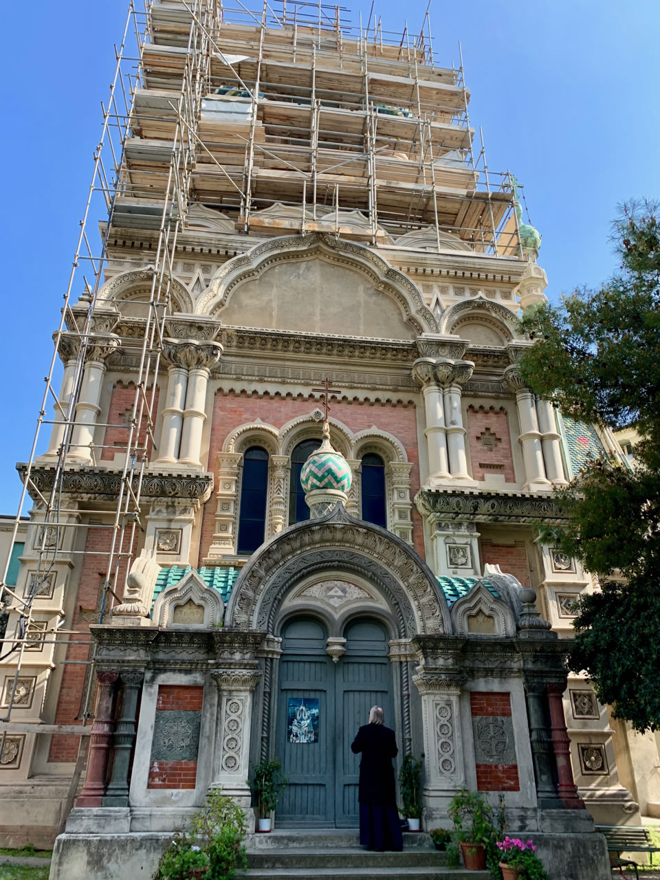 С середины XIX в. Сан-Ремо стал славиться как прекрасный курорт с теплым и ровным климатом, особенно полезный для страдающих легочными заболеваниями. На итальянской Ривьере зиму 1874-1875 гг. провела императрица Мария Александровна, супруга Александра II, в знак благодарности подарившая городу пальмы для нового приморского бульвара. Городские власти назвали этот променад проспектом Императрицы (Corso Imperatrice), и это название сохранилось доныне. Вслед за императрицей в Сан-Ремо на зимние месяцы стала приезжать русская знать, в том числе и члены Дома Романовых. В 1895 г. здесь лечился и умер от туберкулеза двадцатилетний Великий князь Алексей Михайлович. В 1890-х гг. на местной вилле Флора не раз отдыхал его старший брат, Великий князь Сергей Михайлович, которому, наряду с императрицей Марией Александровной, позднее приписывалась первоначальная идея создания русского храма. Многие аристократы — Олсуфьевы, Шереметевы, Демидовы и другие имели на курорте свои постоянные зимние дачи. Некоторые русские больные навсегда поселились в Сан-Ремо, где для них, как и для сезонных курортников появились русская баня, пекарня и аптека. К концу прошлого века мысль о постройке церкви окончательно утвердилась среди русских обитателей города, но дело откладывалось из-за отсутствия средств. До 1908 года, когда была сооружена часовня святителя Николая на городском кладбище Фоче, богослужения совершались на вилле Глория, принадлежавшей прежде Екатерине Челищевой. Она была освящена в 1898 г. с использованием антиминса бывшей походной церкви из Ментона. Два года спустя было получено разрешение освятить постоянный престол во имя св. Екатерины, как этого хотела Анна Стрекалова, дочь покойной Екатерины Челищевой.