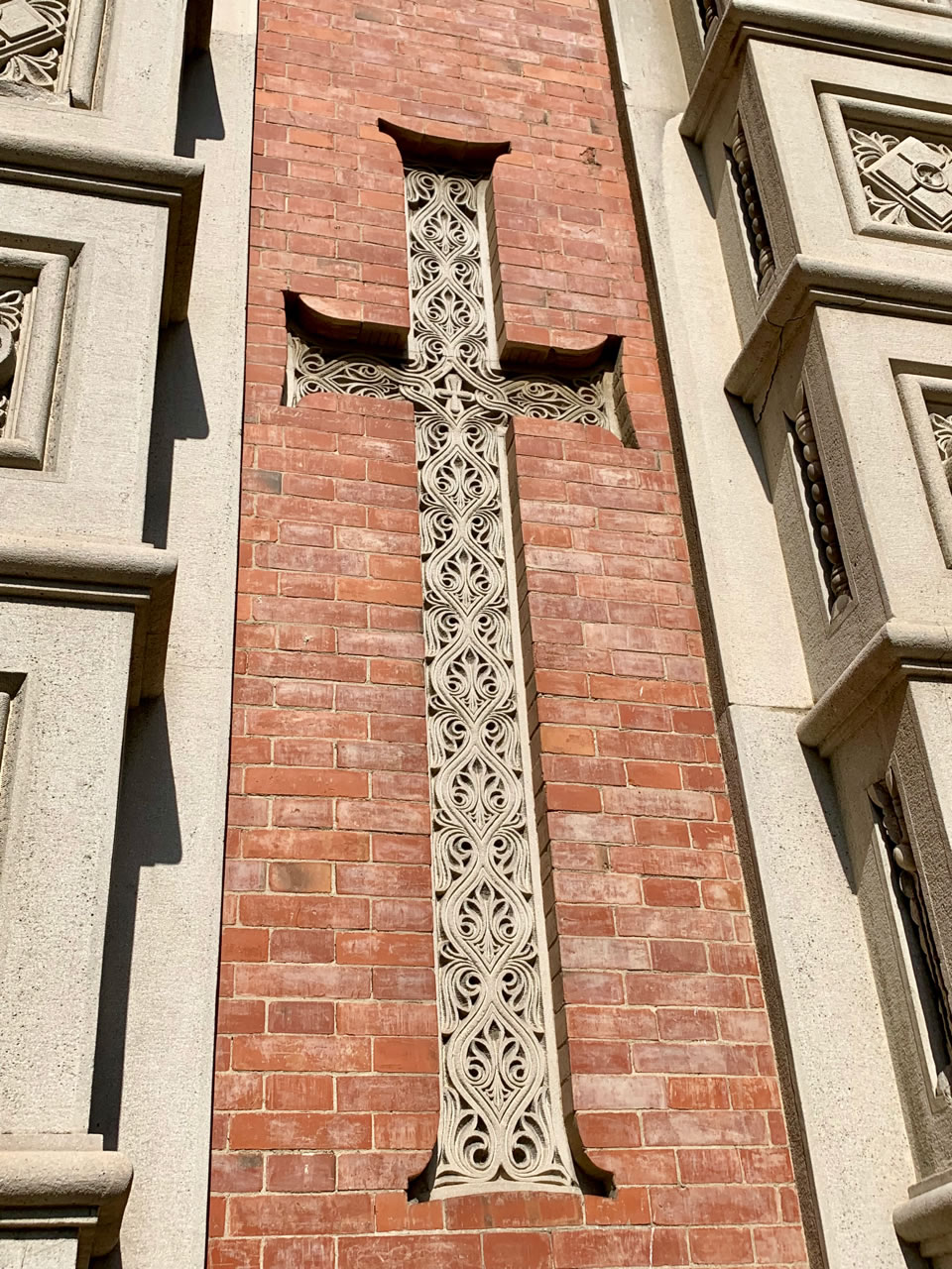 Лишь в 1910 г. образовался попечительный (позднее — строительный) комитет во главе с бывшим обер-прокурором Синода, сенатором В. Саблером, который в 1882 г. по болезни полгода провел в Сан-Ремо. По его словам, «он лично видел, насколько необходима церковь в городе, посещаемом многими тысячами православных больных»; одновременно в Синод поступали жалобы, что «крайне тягостным является отсутствие возможности иметь <…> духовное утешение в церковных службах». В 1911 г. Саблер вновь стал обер-прокурором Синода и санремское дело пошло быстрее. Высочайшим указом от 1 марта 1912 г. Николай II утвердил комитет, разрешив «производить в России повсеместный сбор пожертвований» и выделив на храм из собственных средств 2 тысяч руб. В мае 1912 г. комитет приобрел на имя Таллевича участок в центре города, напротив железнодорожного вокзала, в самом начале проспекта Императрицы. Отец Николай Аквилонов совершил 21(9) декабря 1912 г., в присутствии многочисленных горожан, закладку церкви во имя Христа Спасителя, великомученицы Екатерины и преподобного Серафима Саровского. Эскизный проект храма безвозмездно сделал работавший в Петербурге зодчий А. Щусев, которого об этом попросила его двоюродная сестра Анна Суханина, постоянно жившая на Ривьере. Рабочие чертежи выполнил местный архитектор Пьетро Агости при участии инженера Антонио Торнатори. Агости не только детально разработал окончательный проект, но и наблюдал за сооружением здания. Создавая свои проекты, Щусев и Агости обратились к московско-ярославскому зодчеству XV-XVII вв. (как прежде Преображенский для Флоренции), с его самыми характерными признаками. Кирпичные стены украшены крестами и декоративными изразцами, трехчастные окна — балясинами, венчают здание три ряда кокошников, создающие переход к компактно решенному пятиглавию, купола покрыты граненой полихромной черепицей. На полукруглой апсиде возвышается купол с главкой и крестом сложной формы. Храм почти кубического объема увенчан пятиглавием и имеет высоту около 50 метров. У южной стены высится колокольня — восьмерик на четверике с высоким восьмигранным шатром. Купол с главкой завершает невысокий притвор.