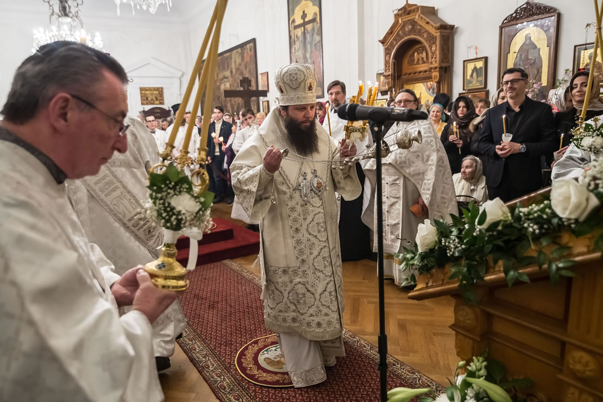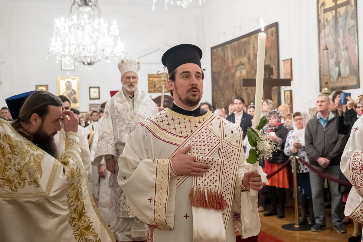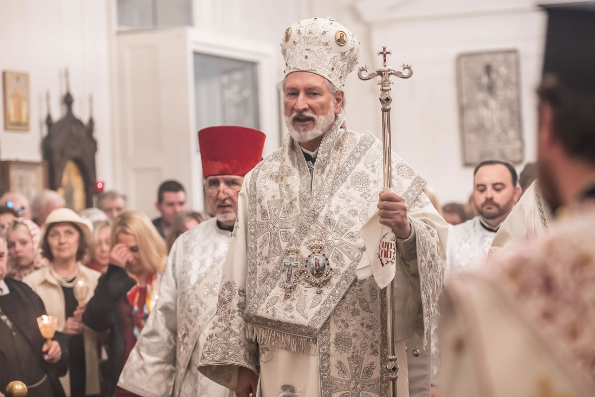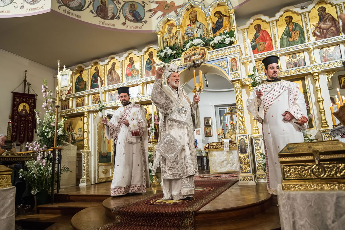 По окончании светлой Пасхальной Утрени епископ Николай совершил ночную Божественную литургию, а епископ Ириней – позднюю Литургию, за которой молились православные собратья-сербы. После обеих Литургий продолжилось общение архипастырей, духовенства и всех верующих за трапезой.
