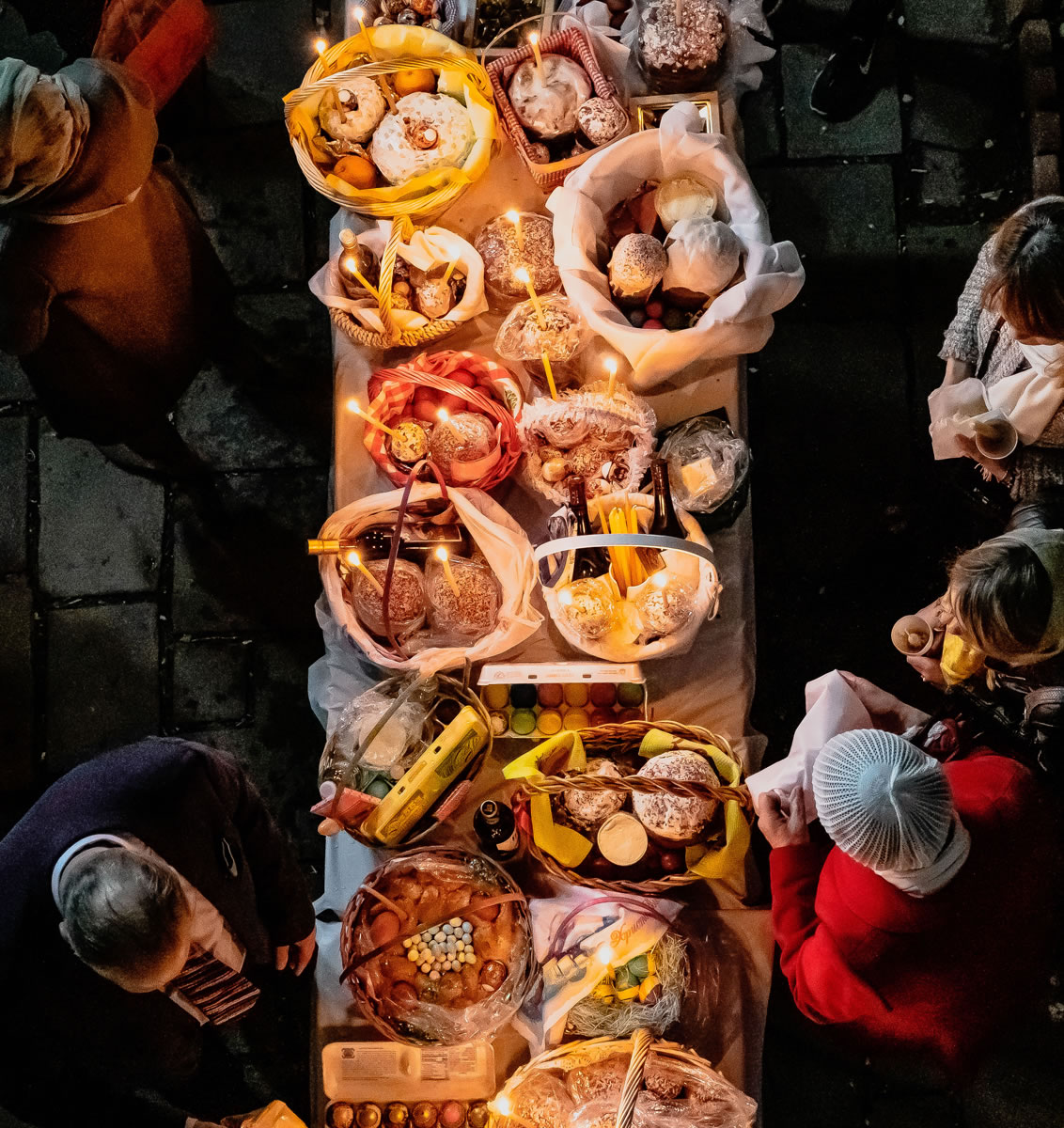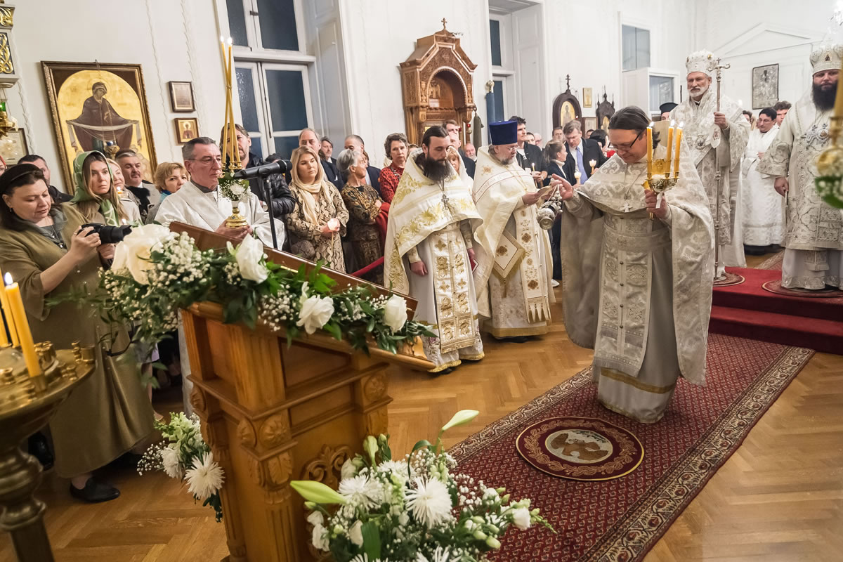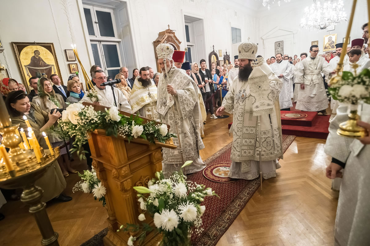 По окончании светлой Пасхальной Утрени епископ Николай совершил ночную Божественную литургию, а епископ Ириней – позднюю Литургию, за которой молились православные собратья-сербы. После обеих Литургий продолжилось общение архипастырей, духовенства и всех верующих за трапезой.