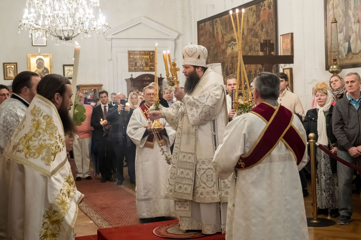 Торжественно, многолюдно и с большим духовным подъемом прошли Пасхальные богослужения в Знаменском соборе г. Нью-Йорка, где их возглавил епископ Манхэттенский Николай, заместитель Секретаря Архиерейского Синода. Его Преосвященству сослужили епископ Восточно-Американский Ириней (Сербская Православная Церковь), соборный клир и духовенство кафедрального собора святителя Саввы Сербского. Вместе с собравшимися многочисленными прихожанами и богомольцами Знаменского собора молились и члены общины кафедрального собора святителя Саввы, постепенно восстанавливающие свой храм на Манхэттене, пострадавший после пожара несколько лет тому назад.