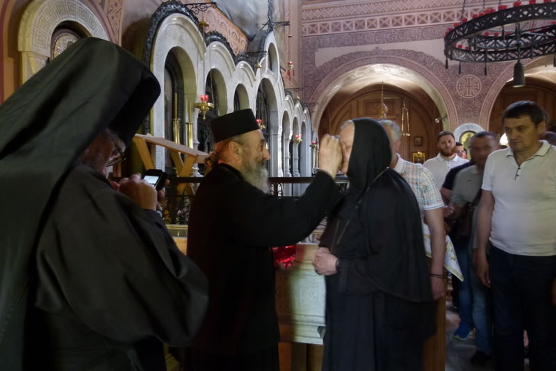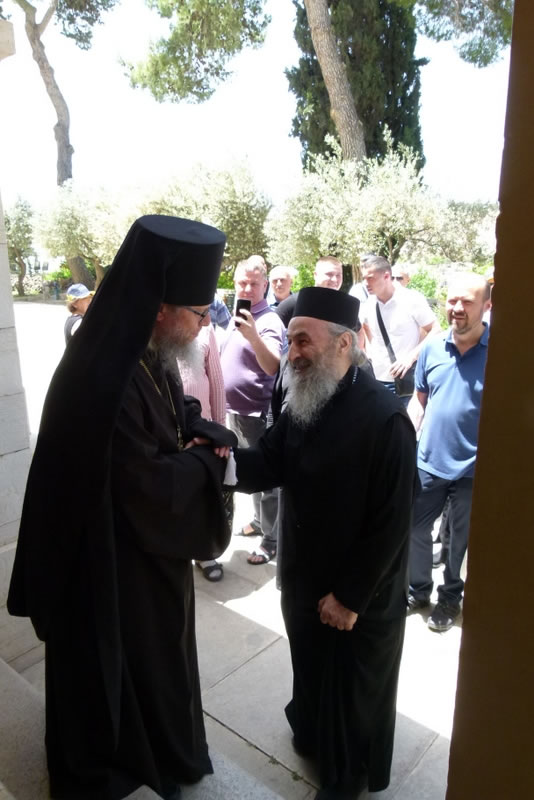 В субботу, 18 мая, Блаженнейший митрополит Киевский и всея Украины Онуфрий посетил русский женский монастырь равноапостольной Марии Магдалины в Гефсимании, где Его Блаженство встретили Начальник Духовной Миссии Русской Зарубежной Церкви в Иерусалиме архимандрит Роман (Красовский) с братией и игумения Елизавета (Шмельц) с сестрами. Под пение «Ангел вопияше» Блаженнейший владыка Онуфрий приложился к престолу и святыням «Царского храма» святой обители. После краткого молебствия архимандрит Роман приветствовал Его Блаженство, заверив высокого гостя в молитвах монашествующих Русской Зарубежной Церкви за каноническую Церковь и православный народ Украины.