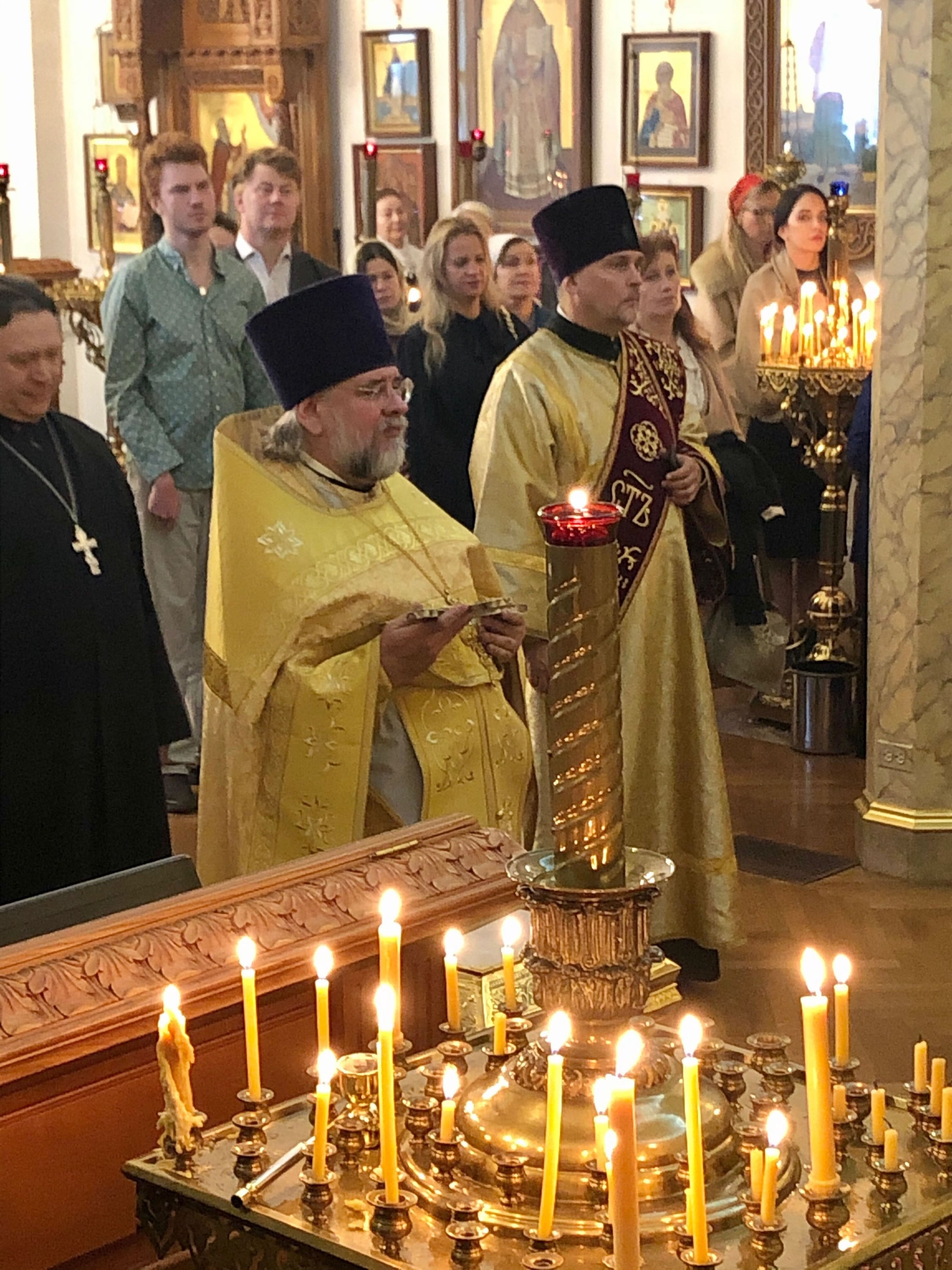В среду, 16 октября, в день своего рукоположения во иереи, совершенного епископом Бостонским Митрофаном (Зноско-Боровским) 25 лет тому назад, ключарь собора совершил Божественную литургию в Сергиево-Радонежской церкви Синодальной резиденции. По окончании богослужения Преосвященный епископ Николай совершил благодарственный молебен перед Курско-Коренной иконой Божией Матери, поздравил отца Андрея и провозгласил ему многолетие.