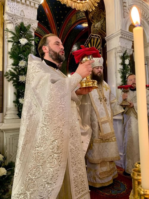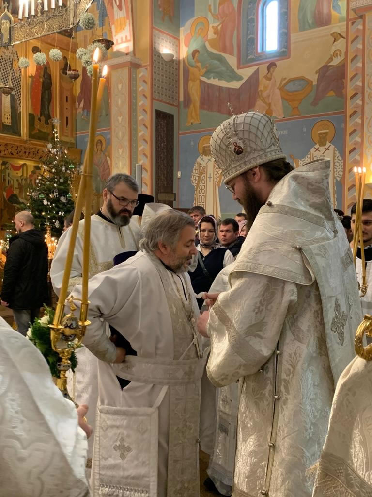 Во вторник, 7 января, в праздник Рождества Христова, епископ Лондонский и Западно-Европейский Ириней совершил Божественную литургию в Богородице-Рождественском кафедральном соборе г. Лондона. На малом входе помощник настоятеля кафедрального собора протоиерей Виталий Серапинас был награжден правом ношения палицы.