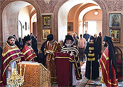 Начальник Миссии архимандрит Роман (Красовский) с духовенством обители совершил молебный чин в храме равноапостольной Марии Магдалины в Гефсиманском саду, а духовенство Спасо-Вознесенского монастыря совершили тот же чин на Святой горе Елеон.