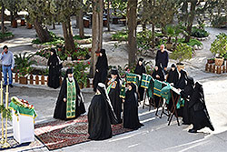 Праздничное богослужение торжественно совершили в субботу вечером и воскресенье во всех храмах Духовной Миссии Русской Зарубежной Церкви. В Елеонском женском монастыре возглавил службу начальник Миссии, архимандрит Роман (Красовский). Ему сослужили духовенство монастыря: архимандрит Василий (Дружинец), игумен Иона (Галишников) и диакон Вячеслав (Батальский).