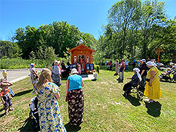 В этом году 100-летия Русской Зарубежной Церкви, праздничные службы проходят в условиях ограничений из-за разгоревшейся пандемии. 17 июля состоялась праздничная Литургия и крестный ход. После службы, верующие смогли посетить небольшую фотовыставку под открытым небом, посвящённую царской семье.