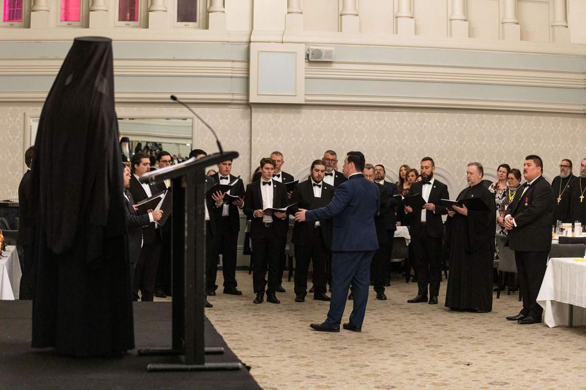 В завершение добавим, что на торжественном собрании была представлена выставка исторических фотографий Царя-Страстотерпца Николая II и Царской семьи «Романовы - царское служение», отражающая эпоху правления и личный подвиг последнего Российского Императора, имя которого свято хранилось в русском церковном зарубежье. Русская Зарубежная Церковь прославила членов семьи Императора Николая II в лике святых в 1981 году.