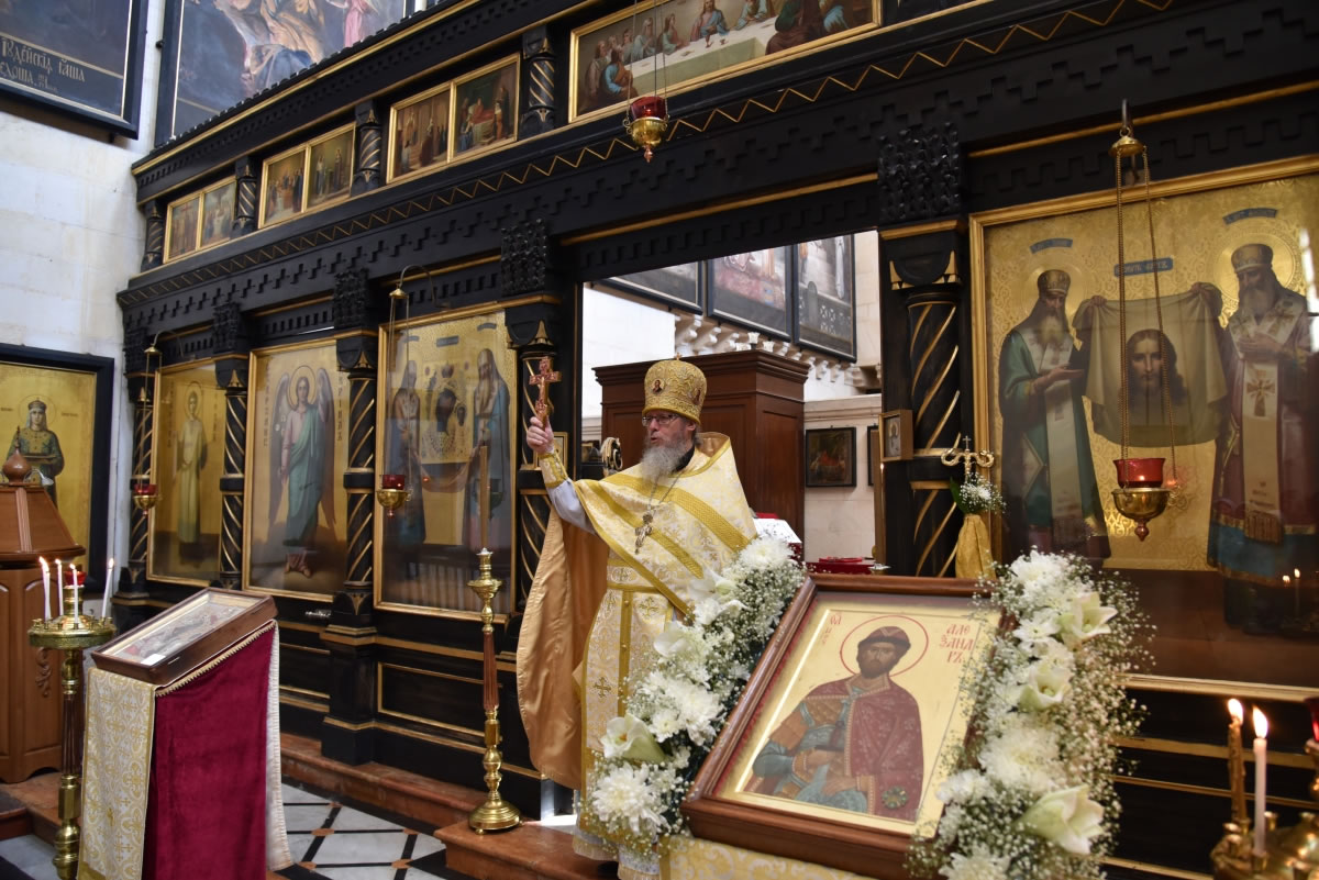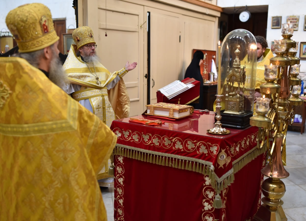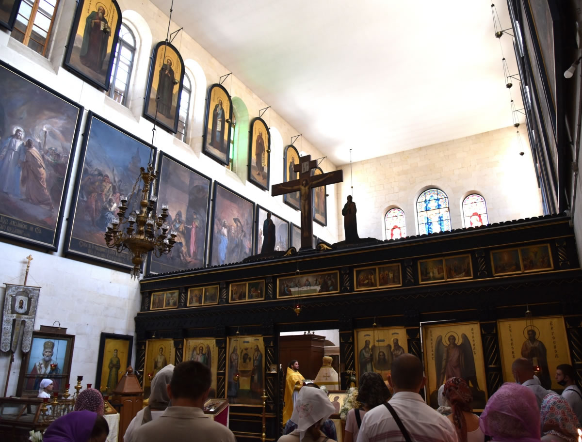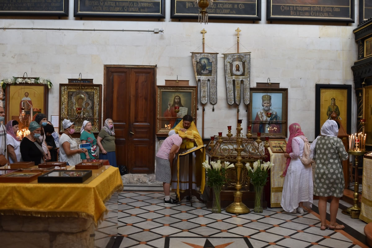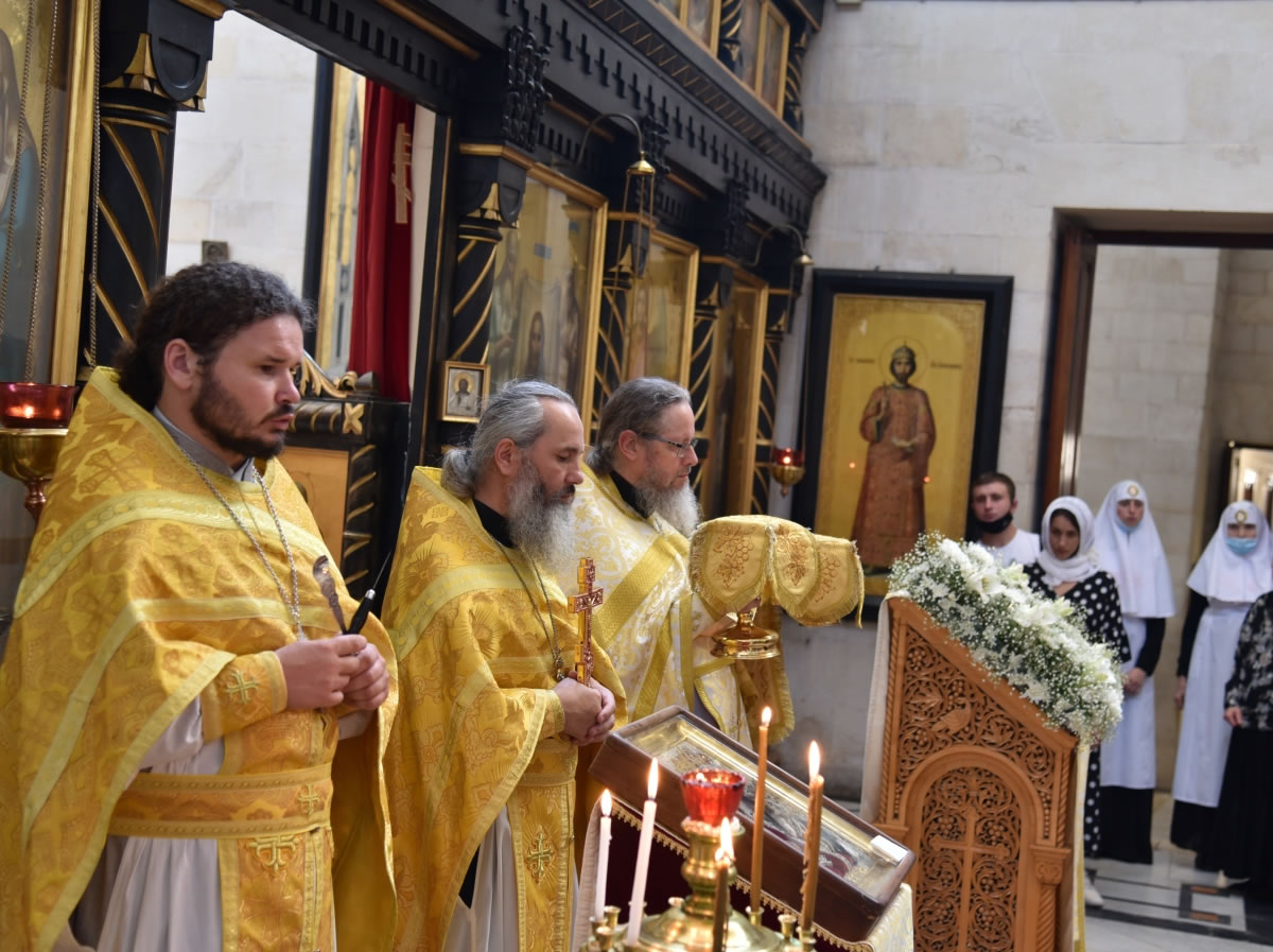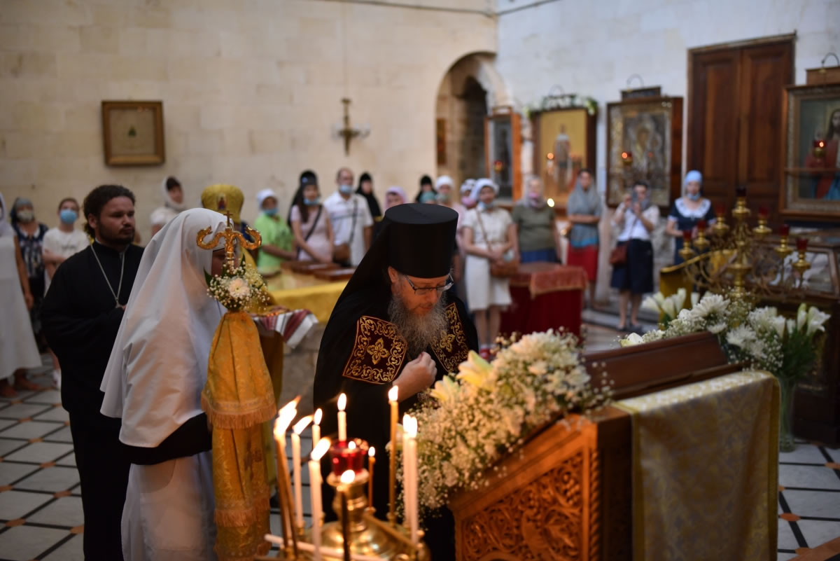 В 8:00 утра самого дня праздника встречали Начальника Духовной Миссии Русской Зарубежной Церкви в Иерусалиме архимандрита Романа (Красовского), который возглавил Божественную литургию. Хор сестер Гефсиманского монастыря равноапостольной Марии Магдалины пел под управлением инокини Александры. При стечении множества паломников и молящихся, священнослужители причастили говеющих из двух чаш. Начальник Миссии проповедывал на слова прославляемого святого «Не в силе Бог, а в правде!».