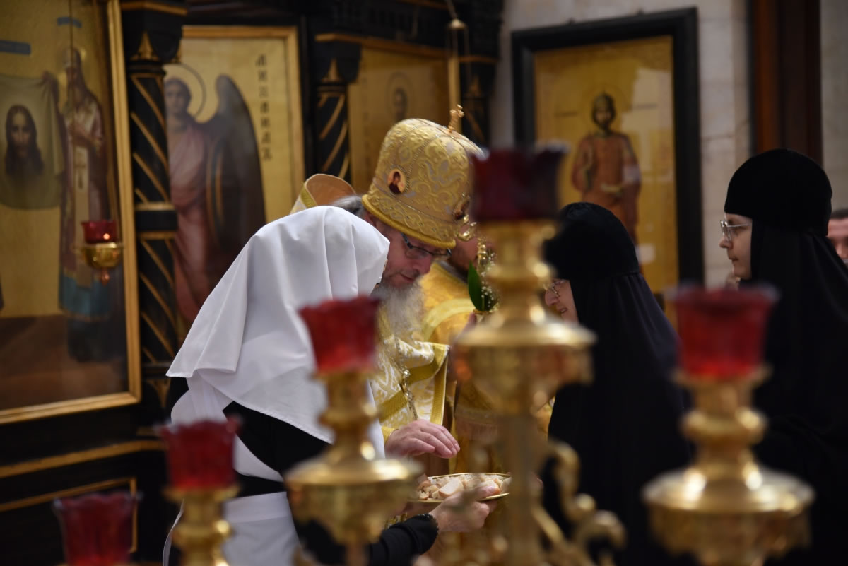Накануне праздника архимандрит Василий (Дружинец) – клирик Спасо-Вознесенской женской обители на Елеоне, в сослужении священника Романа Гультяева совершили всенощное бдение.
