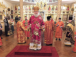По окончании богослужения митрополит Иларион с духовенством совершили молебен святым. Затем Его Высокопреосвященство поздравил всех с праздником новомучеников и напомнил верующим об их подвиге. Он призвал помнить замученных и пострадавших в годы гонений: тех, кого мы знаем по именам, и тех, чьи имена нам неизвестны, о которых апостол Иоанн Богослов писал как о людях "в белых ризах и с пальмовыми ветвями в руках" (Откр. 7:9). Владыка Иларион также призвал прихожан держаться православной веры и не забывать храм Божий. Он поздравил с именинами архиепископов Монреальского и Канадского Гавриила и Чикагского и Средне-Американского Петра и пожелал им многая лета, а всем присутствующим преподал Божие благословение.