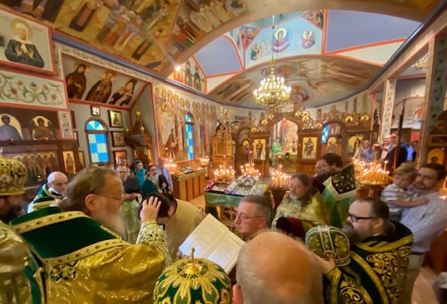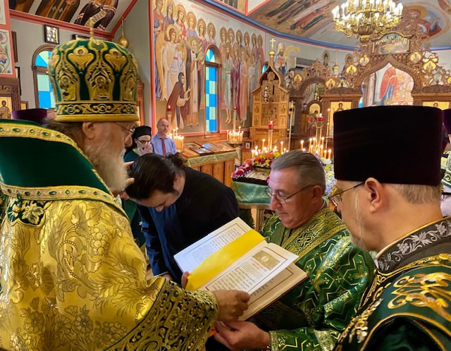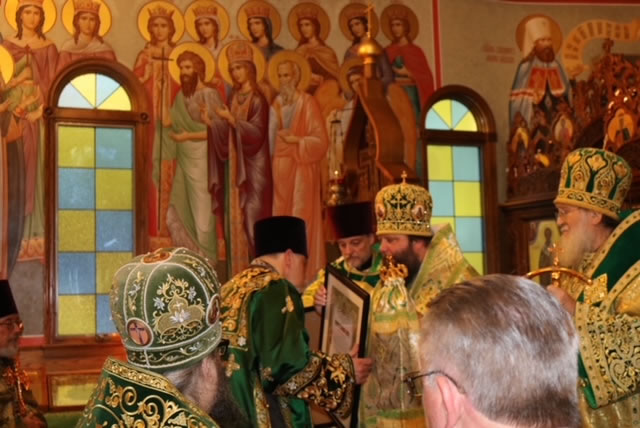 Божественную литургию в самый день престольного праздника возглавил митрополит Восточно-Американский и Нью-Йоркский Иларион, Первоиерарх Русской Зарубежной Церкви; заместитель секретаря Архиерейского Синода епископ Манхэттенский Николай, викарий Восточно-Американской епархии, в сослужении настоятеля храма, местного и приезжего духовенства, в присутствии Коренно-Курской иконы Божией Матери "Знамение", при ликующем пении церковно-приходского хора под управлением Н.М. Миро. Перед началом Божественной литургии Его Высокопреосвященство совершил хиротесию Петра Волкова во чтецы и иподиаконы.