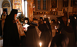 После слов назидания архимандрит Роман передал новопостриженную монахиню настоятельнице монастыря игумении Варваре (Новиковой), от которой она получила благословение на монашеский путь.