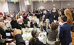 По окончании богослужения архипастыри вручили юбиляру благословенную грамоту, подписанную всеми Преосвященными членами Архиерейского Синода, а его супруге Екатерине — епархиальную грамоту.