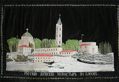 На фото; Знаменитый ковер, вышитый первыми сестрами Святого Русского Елеона с 1906 по 1914 гг. во главе с настоятельницей обители матушкой Евпраксией.