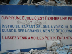 Хотя это и не настолько срочно, как другие нужды, я надеюсь, что миссия сможет возглавить деятельность школы и предоставлять детям обучение в то время, как 90 процентов школ в Порт-о-Пренс разрушены.