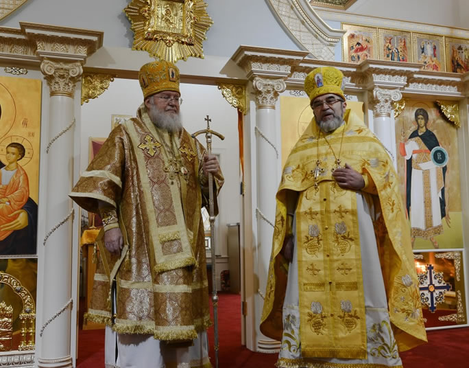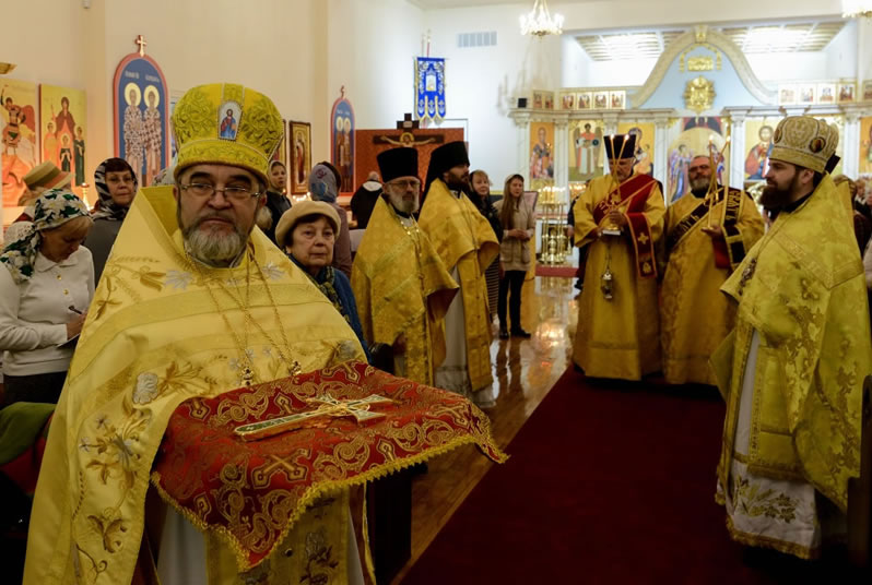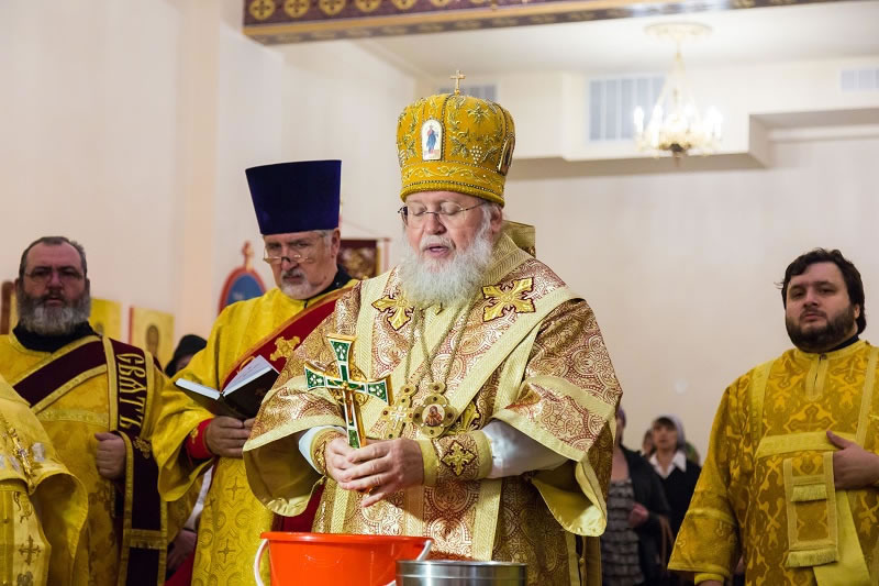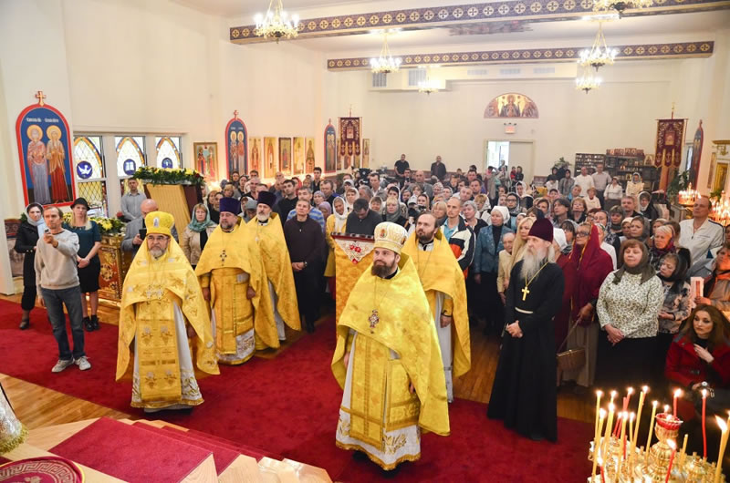 Первоиерарху Русской Зарубежной Церкви сослужили настоятель прихода и благочинный Нью-Йоркского (Первого) благочиннического округа прот. Александр Беля, архимандрит Александр (Беля; благочинный Флоридского (Седьмого) благочиннического округа), протоиерей Андрей Соммер (ключарь Знаменского Синодального собора г. Нью-Йорк), протоиерей Петр Куницкий и иерей Константин Гаврилкин (клирики храма свв. Новомучеников и Исповедников Российских в Бруклине), иеромонах Фотий (Уланов; клирик Покровского храма гор. Глен-Ков, штат Н.Й.), протодиакон Николай Мохов и диакон Дионисий Львов (клирики Синодального собора), приходской диакон Петр Уткин