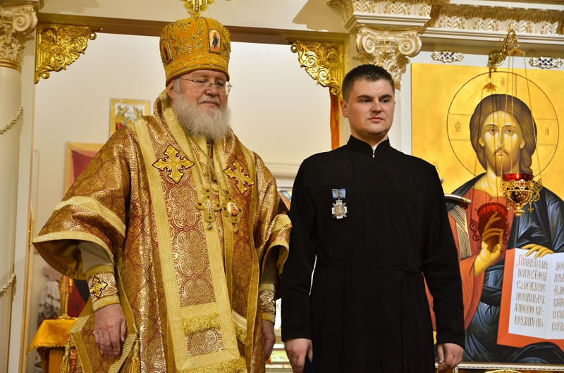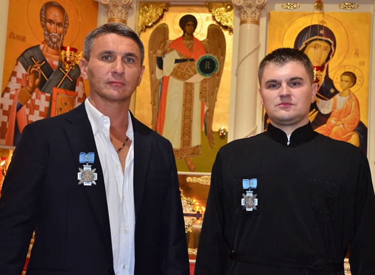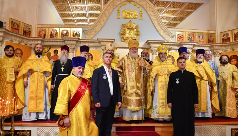 По завершении богослужения Владыка Иларион наградил высшей наградой Русской Зарубежной Церкви – Синодальным Орденом Курско-Коренной иконы Божией Матери, 3-й степени, директора строительной компании Михаила Кадара, который занимался реконструкцией здания, и старосту храма Ивана Белю, исключительными стараниями которого было найдено это помещение и достойно подготовлено к богослужебной деятельности. За помощь храму епархиальными грамотами были отмечены Вадим и Ольга Федоровы, Михаил Гечко, Инна Стоян, Андрей и Марина Андреевы.