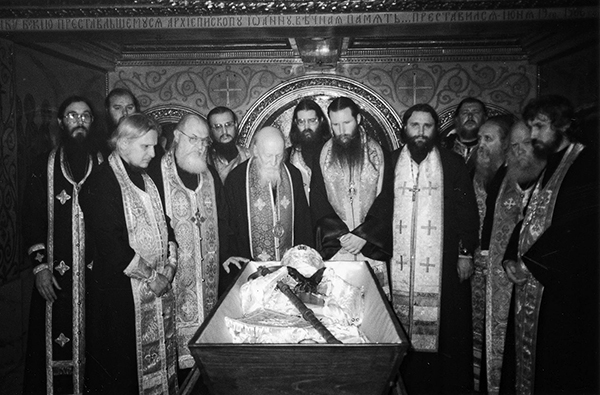 В лето тысяча девятьсот девяносто третье от Рождества по плоти Бога Слова, в день преподобного Харитона Исповедника (29.09/11.10), явил нам грешным Всемилостивый Господь величайшую милость, обретение святых и многоцелебных мощей святителя и чудотворца Иоанна, архиепископа Шанхайского и Сан-Францисского, кои почивают в благоукрашенной и намоленной усыпальнице, уже нетронутыми 27 лет от погребения, под спудом кафедрального собора Пресвятой Богородицы «Всех скорбящих Радости», что в богоспасаемом граде Сан-Франциско.