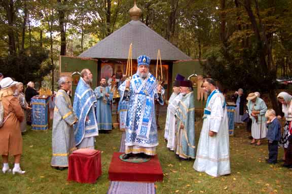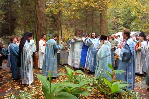 The Kursk-Root Hermitage Celebrates its Feast Day Sunday, September 24, was the feast day of the Kursk-Root Hermitage, celebrated on the Nativity of the Mother of God. Officiating at the open-air services at the chapel was Vicar Bishop of the Diocese of Eastern America and New York, His Grace Bishop Gabriel of Manhattan, who, to the great joy of the worshipers, brought the Kursk-Root Icon of the Mother of God "of the Sign." His Grace was joined by Protopriest Wsewolod Dutikow; Protopriest Alexander Donchenko; Priest Ilya Gun; Priest Alexander Botschagow; Priest Vadim Arefiev; Hieromonk Tikhon; and Hieromonk Evtikhii; along with Deacon Vladimir Tsurikov and Deacon Vladimir Oliynik.