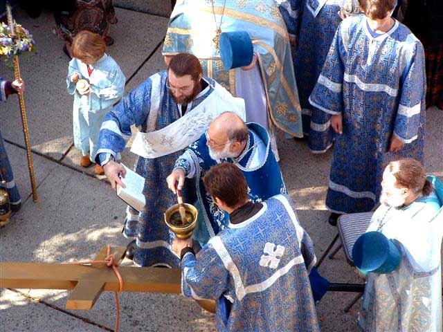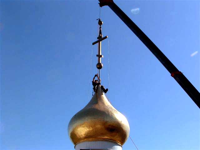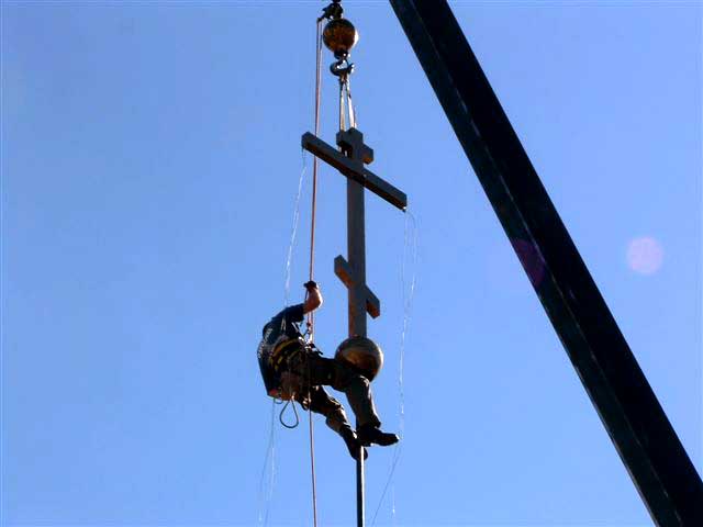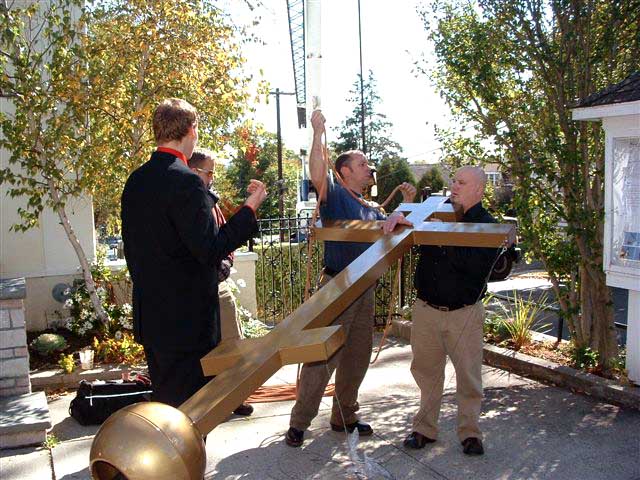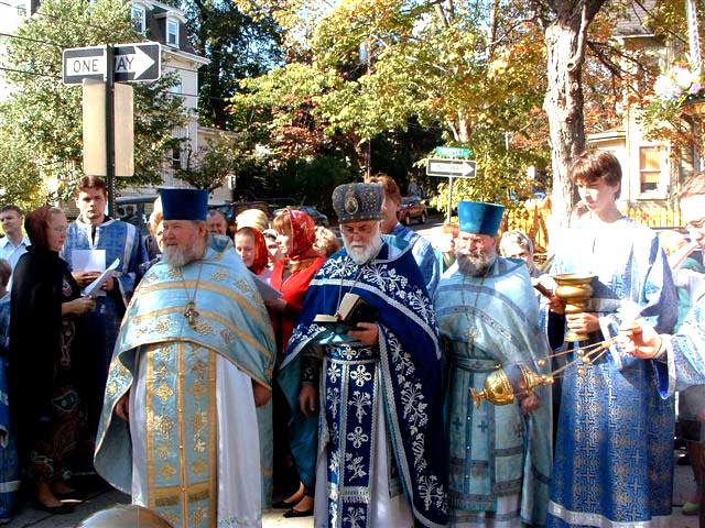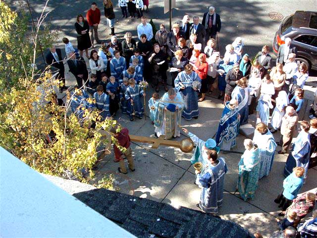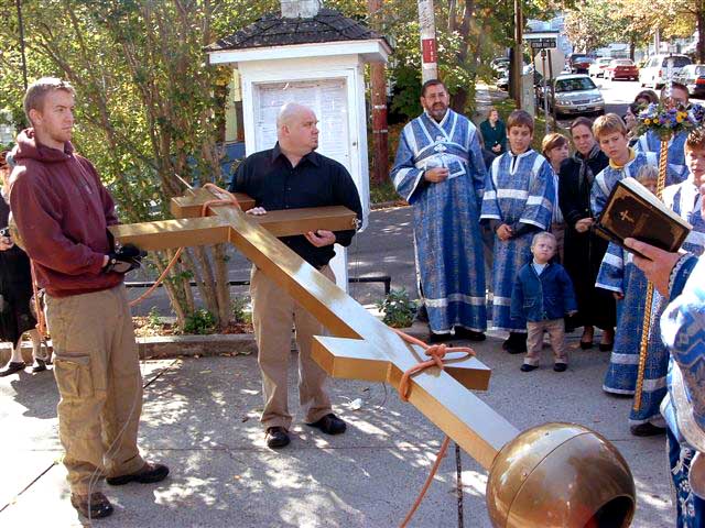 On October 14, the feast day of Holy Virgin Protection Church in Nyack, NY, the Parish Rector, Mitred Protopriest George Larin conducted Divine Liturgy along with Mitred Protopriest Vladimir Doroskiewicz; Protopriest Gregory Kotliaroff; Protopriest Elias Gorsky; Priest Vadim Arefiev; along with Deacon Dimitri Temidis; Deacon Eugene Kallaur; and Deacon Dimitry Don. At the end of Liturgy, the church's new cross was blessed, which was then lifted into place over the main cupola.