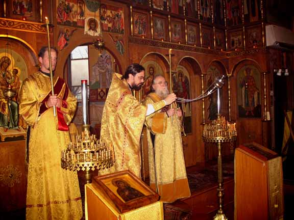 The Staff and Vestments of Metropolitan Philaret of Blessed Memory Are Sent to Moscow On Sunday, November 12, with the blessing of His Eminence Metropolitan Laurus, First Hierarch of the Russian Orthodox Church Outside of Russia, in fulfillment of the wishes of Metropolitan Philaret (Voznesensky, +1985) of blessed memory, and the will of his cell-attendant, Protodeacon Nikita Chakiroff, Mitred Protopriest Roman Lukianov, Rector of Epiphany Church in Roslindale, MA (near Boston), handed over the staff and vestments of the third First Hierarch of the Church Abroad to His Holiness Patriarch Alexy of Moscow and All Russia during a very ceremonious service. Fr Roman would have traveled to Russia himself but could not due to illness. Therefore, praying during Divine Liturgy, which was performed by Priest Victor Boldewskul, Deputy Rector of the parish, along with the other clergymen of the church, was Archimandrite Tikhon (Shevkunov), Rector of Sretensky Stavropighial Monastery in Moscow, sent there by the Patriarch. At the end of Liturgy, Fr Victor addressed the multitude of worshipers with the following words of edification: