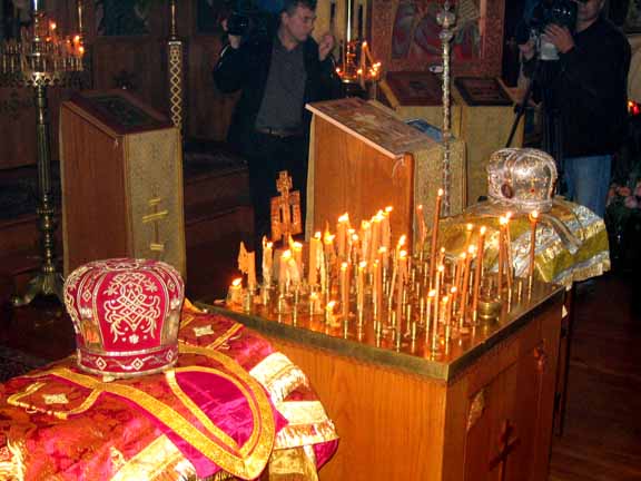"Today, in our church, Fr Roman will hand over, through Archimandrite Tikhon, Prior of Sretensky Monastery in Moscow, the vestments of that First Hierarch who glorified the New Martyrs abroad to that First Hierarch who glorified them in Russia.