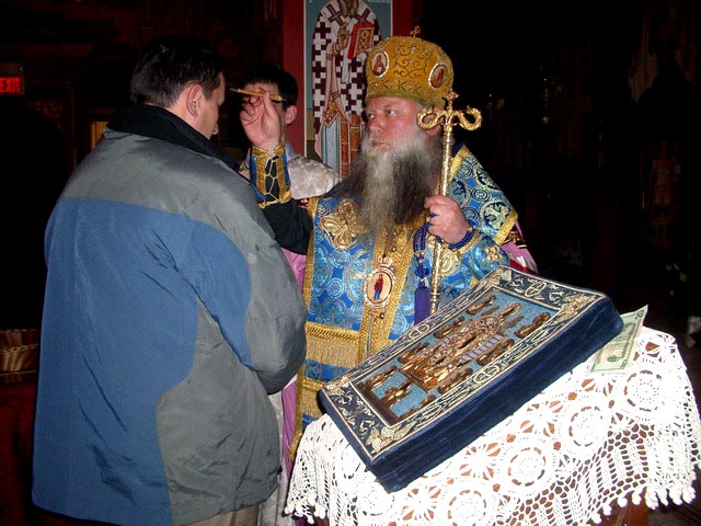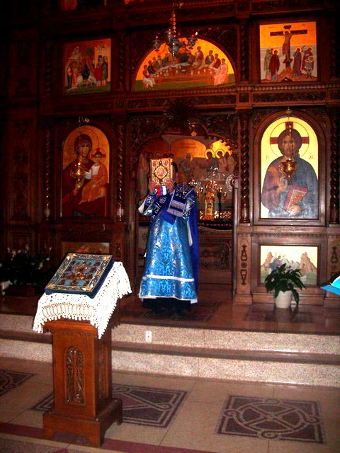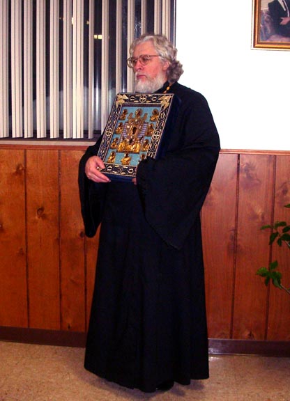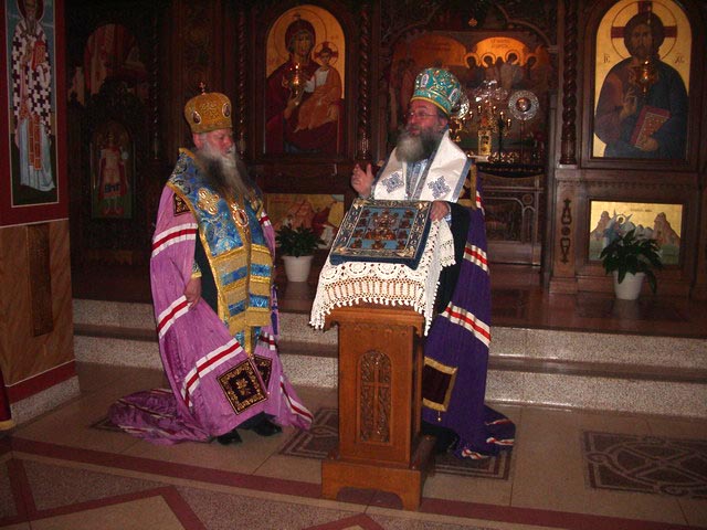 The Kursk-Root Icon Visits Novo-Gracanica Diocese of the Serbian Orthodox Church On Friday, December 1, His Grace Bishop Peter of Cleveland brought the Kursk-Root Icon of the Mother of God to Novo-Gracanica Monastery of the Serbian Orthodox Church in Chicago. Here, Bishop Longin of Novo-Gracanica and Bishop Peter, Administrator of the Diocese of Chicago and Detroit of the Russian Orthodox Church Outside of Russia, jointly performed a moleben with an akathist along with the clergymen of the Church Abroad and the Serbian Orthodox Church, to a multitude of Orthodox worshipers. At the end of services, Bishop Longin expressed his gratitude to Bishop Peter and the Russian clergymen for bringing the holy icon to them and for their joint prayer before it, serving as yet another example of the unity of the fraternal peoples of Russia and Serbia. His Grace Bishop Longin especially thanked Vladyka Peter for his constant support for the brotherly bonds between the two Churches. During the trapeza, Bishop Peter recounted the history of the Kursk-Root Icon, concentrating on the time it spent in Serbia. Below are photographs of the visit.
