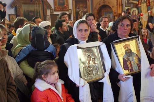 After Divine Liturgy, a procession of the cross went to the parish hall, where 40 years ago, St John of Shanghai and San Francisco died. At the time of his repose, he was holding the Kursk-Root Icon of the Mother of God. A chapel was established in this room. The holy bishop's cassock is displayed here in a special frame. In celebration of the fortieth anniversary of St John's death, St Nicholas Cathedral commissioned an iconostasis to be made in Belarus, which was delivered just days before the Cathedral feast day. The parishioners erected it on the eve of the holiday, where it was later consecrated by His Eminence Archbishop Kyrill. The site of the death of St John is a holy place not only for the parishioners of St Nicholas and the rest of the Diocese, but for all those who honor the memory of the great ugodnik (pleaser) of God, St John.