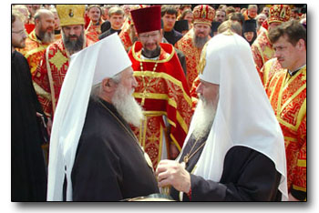 Immediately following the signing of the Act of Canonical Communion, His Holiness Patriarch Alexy, His Eminence Metropolitan Laurus and the other bishops will conduct Divine Liturgy. During the service, the Royal Doors will be open in the Paschal tradition, and the people of God can fully participate in the joy of the first joint partaking of the Eucharist by the hierarchs and clergymen of the then-united Russian Church.