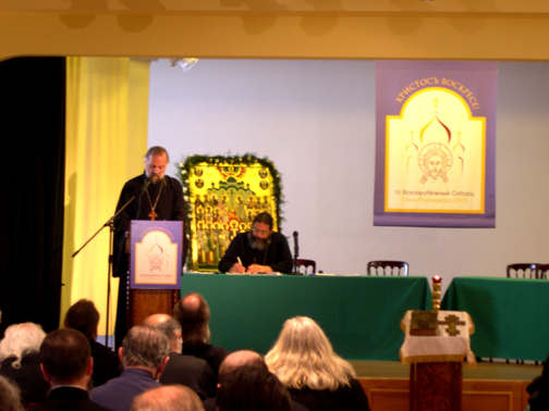 At the afternoon session of the IV All-Diaspora Council, it was decided to examine the mission and ministry of ROCOR. The session opened with a speech by Protopriest Victor Potapov, Rector of St John the Baptist Cathedral in Washington, "The Task of an Orthodox Parish in Our Day." Fr Victor stressed that one must restore in the conciliar consciousness of ROCOR—in the consciousness of her pastors and flock—the lofty ideal of church community and the parish. Only a parish which sees itself as the inseparable part of the larger Body of Christ will be able to struggle against that which hinders our salvation—evil and sin. Only in the parish that remembers that its roots go back to the times of the Acts of the Apostles can take serious measures to help the poor, the unfortunate and those who simply need to hear a kind word.
