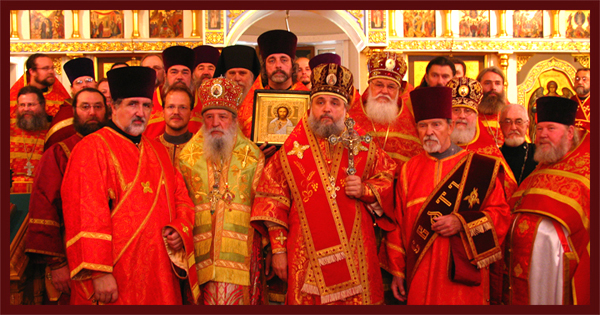 On the Nativity of St John the Forerunner and the anniversary of the episcopal consecration of his Vicar Bishop, His Eminence Metropolitan Laurus officiated at Divine Liturgy at the Cathedral of Our Lady of the Sign at the Synod of Bishops in New York, along with His Grace Bishop Gabriel of Manhattan and 33 other clergymen. At the end of Divine Liturgy and a moleben, His Eminence congratulated Bishop Gabriel on his tenth anniversary as bishop and wished His Grace God's help in the bearing of his archpastoral cross. A reception was then held, at which many warm greetings were read and gifts presented to His Grace. Below are photographs of the event.