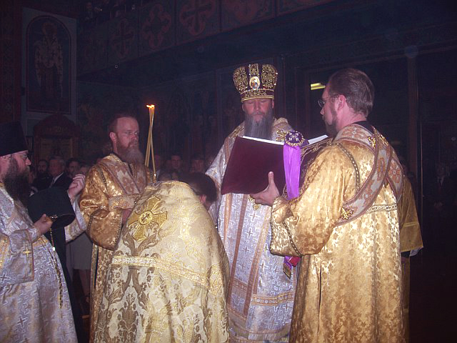 The clergymen and flock of the Diocese of San Francisco and Western America marked the 40 th anniversary of the repose of St John of Shanghai and San Francisco with great solemnity and inspiration with a Divine Liturgy, at which His Eminence Archbishop Kyrill officiated along with diocesan and visiting clergymen. During the minor entrance, His Eminence elevated Hegumen Theodosius, Rector of St Tikhon Church at the Diocesan Headquarters and former residence of St John , to the rank of archimandrite, in accordance with a decision of the Synod of Bishops. After the end of Liturgy, a moleben was served along with a procession of the cross, after which the Cathedral Sisterhood offered the clergymen and guests a magnificent trapeza meal.