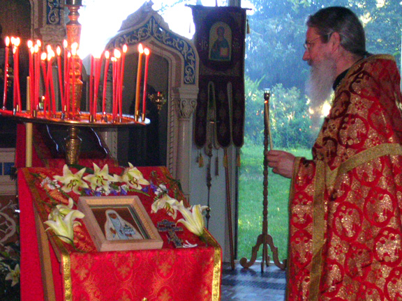 From the Life of the New Convent of the Diocese of Berlin and Germany  On July 18, the Convent of St Elizabeth the Martyr celebrated its first feast day. The solemn all-night vigil was conducted by Protopriest Nikolai Artemoff with Deacon Alexander Rolov. Arriving from Darmstadt in time for the polyeleos was His Grace Bishop Agapit of Stuttgart. The next day, the spiritual father of the Convent was greeted before Liturgy—His Eminence Archbishop Mark. The spirit of the Resurrected Christ, fittingly for the memory of Holy Grand Duchess Elizabeth, reigned at her Convent. The church was adorned in red vestments and red Paschal candles burned throughout the church; it was all reminiscent of a little Pascha. After Divine Liturgy, there was a procession of the cross around the Convent. Afterwards, the nuns invited all the pilgrims to a festive trapeza, during which Vladyka Mark congratulated the nuns on their first feast day. His Eminence noted that from now on in the German Diocese, women, too, will have a monastic retreat where they can draw strength and spiritual edification, sadly lacking until now. Women pilgrims can now visit the new convent and combine monastic labors with prayer, attending the daily services.