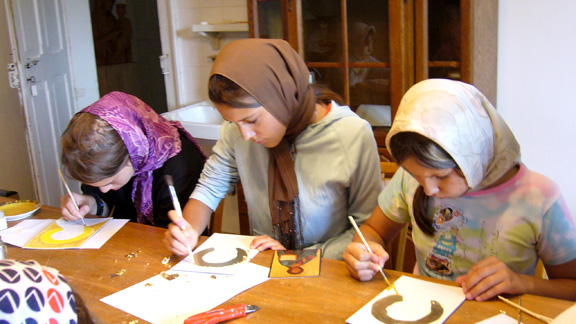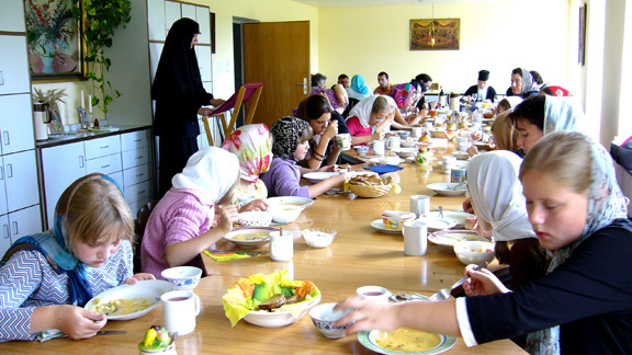 The camp opened with a moleben. Hieromonk Evfimii (Logvinov) from St Job of Pochaev Monastery in Munich served on the feast day of St Seraphim of Sarov. The arrival at the Convent of the Ruling Bishop of the Diocese, His Eminence Archbishop Mark, brought us great joy; Vladyka served all-night vigil and Divine Liturgy on the feast day of Holy Prophet Elias, along with Fr Dimitry Kalachev of Billefeld. The children were given the opportunity to participate in the daily services, confess and partake of the Holy Mysteries, and also made new friends. The first half of the day was devoted to studies in Church Slavonic, icon-painting, liturgical singing, and also 30 minutes of reading of the Gospel and discussion under the open sky. After lunch, the girls would swim in the lake, and made a pilgrimage to St Job of Pochaev Monastery. Unfortunately, because of foul weather, the scheduled horseback riding session was canceled. The remaining time was devoted to drawing and arts and crafts. After evening trapeza, the participants were shown videos on monasteries and other holy sites. The daily monastic way of life enhanced the orderly mood of the camp. On Friday, August 4, after an akathist before the myrrh-streaming "Donskoy" icon of the Most-Holy Mother of God, everyone departed for their homes. It was a joy to hear the children express the desire to meet once more next summer in Buchendorf. Plans are for the Camp of SS Martha and Maria to be held every summer at the Convent. In response to the wishes of the parents, the dates of next year's camp will be provided well ahead of time.