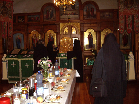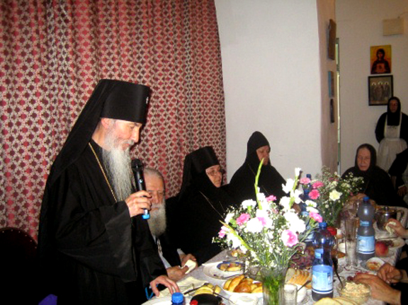 After the singing of Many Years and the veneration of the cross, a festive trapeza was offered, during which His Eminence Metropolitan Laurus, Archbishop Mark, the Head of the Ecclesiastical Mission of the Moscow Patriarchate, Archimandrite Elisei, Abbess Elizabeth and Abbess Moisseia gave speeches. Also present at the trapeza was Abbess Georgia of Gorny Convent.