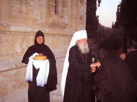 Bidding farewell to Archimandrite Hilarion, His Eminence then departed for Jerusalem, to the Convent of St Mary Magdalene in Gethsemane, where he prayed in the altar during all-night vigil.