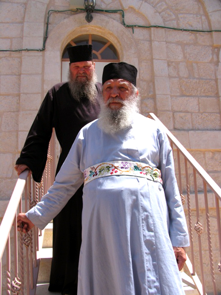 Here His Eminence Vladyka was greeted by Archimandrite Seraphim (Bobich), who had at one time lived in St Elias Skete on Mount Athos, and Monk Vasily, a member of the Russian Ecclesiastical Mission in Jerusalem. His Eminence venerated the holy sites and viewed the chapel and garden, after which he shared a meal with the brethren of the Russian Orthodox Church Outside of Russia and representatives of the Moscow Patriarchate who also conduct their service there. During the trapeza, the President of the Russian Church Abroad was told about the life of the residents of this holy place, and answered their questions. As he said goodbye to the brethren, His Eminence thanked them for their warm reception, then departed for Galilee.