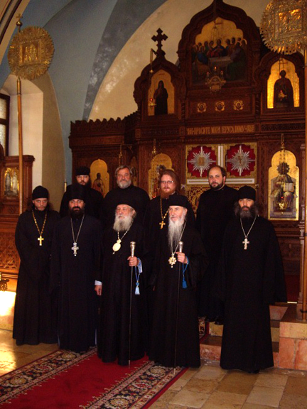 Metropolitan Laurus, Archbishop Mark and the Delegation of the Russian Orthodox Church Outside of Russia Delegation Visit Holy Trinity Cathedral and the Mission of the Moscow Patriarchate  On August 28, the Dormition of the Most-Holy Mother of God, His Eminence Metropolitan Laurus, along with His Eminence Archbishop Mark of Berlin and Germany, Overseer of the Russian Ecclesiastical Mission in Jerusalem; Hieromonk Nicholas (Perekrestov), Secretary of the Mission; and the members of the delegation of the Russian Orthodox Church Outside of Russia visited the Russian Holy Trinity Cathedral in Jerusalem. Here, His Eminence Vladyka Metropolitan was greeted by the Head of the Mission of the Moscow Patriarchate in Jerusalem, Archimandrite Elisey (Ganaba), who gave a tour of the Cathedral's holy items.