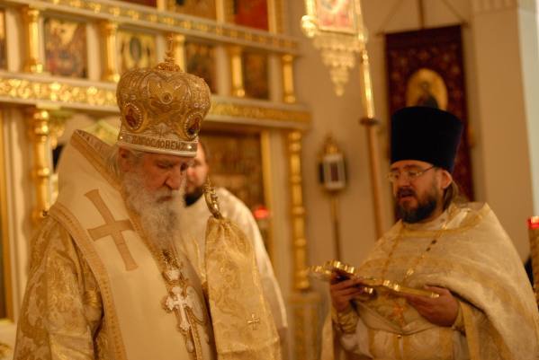 At the end of Divine Liturgy, the Senior Priest of the Cathedral, Protopriest Andrei Sommer, greeted His Eminence, wishing him heavenly assistance in his trip to Russia. In his response, His Eminence Vladyka thanked Fr Andrei for his kind words and asked for everyone's holy prayers.