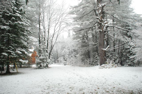The visitors to Ruskoka were greeted by the late Canadian autumn, which so remind one of the middle regions of Russia. At first the weather was mild and the winds calm, but at dawn on Tuesday, snow began to fall, and Ruskoka whitened in minutes, transformed into the image of a Christmas card.