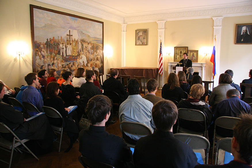 The young participants visited the Russian Consulate in New York and spoke with Consul General Sergei Viktorovich Garmonin. The Russian diplomat told them about the role of consulates, referring to the preservation of culture and the protection of the rights of citizens. SV Garmonin pointed out the fruits brought by the cooperation of diplomatic missions of Russia and the Church now that the unity of Orthodoxy has become a fact. The Ambassador then answered questions.