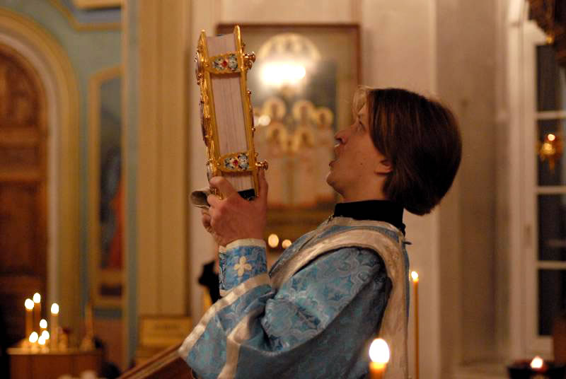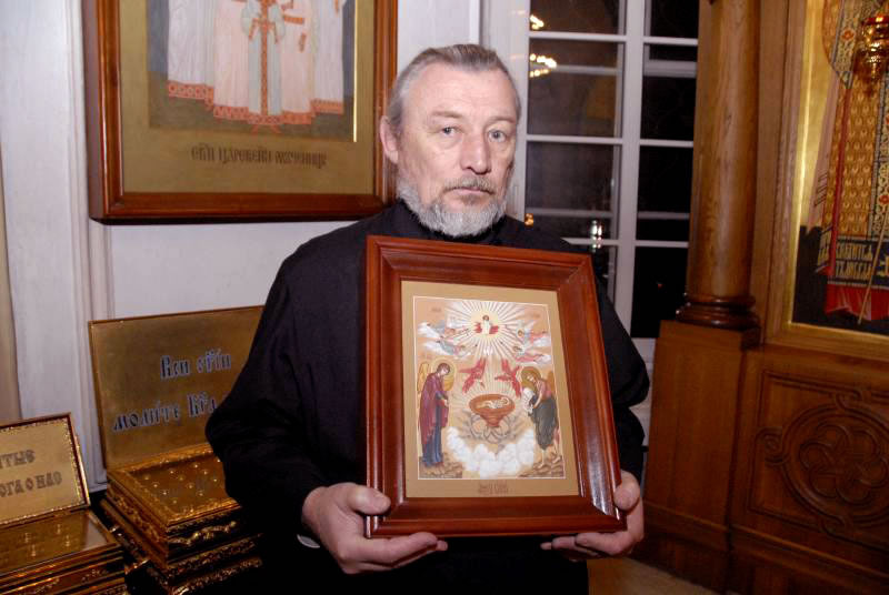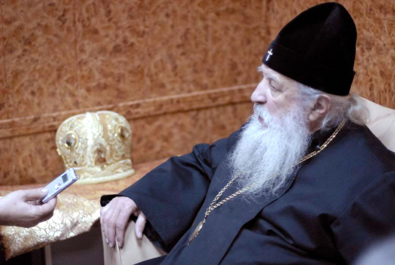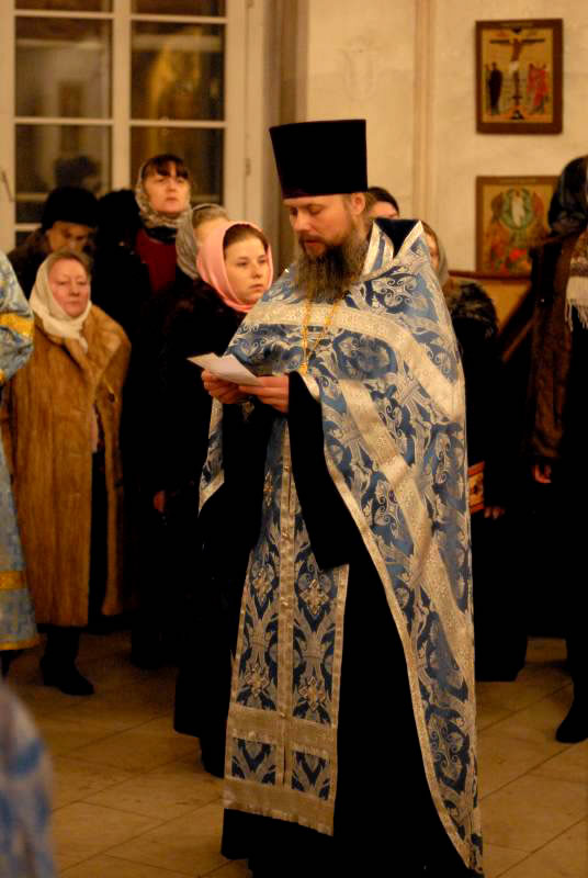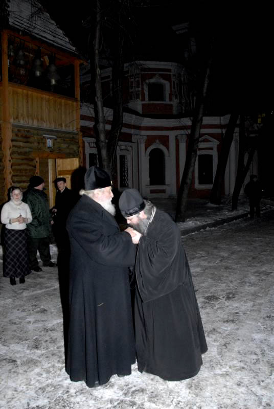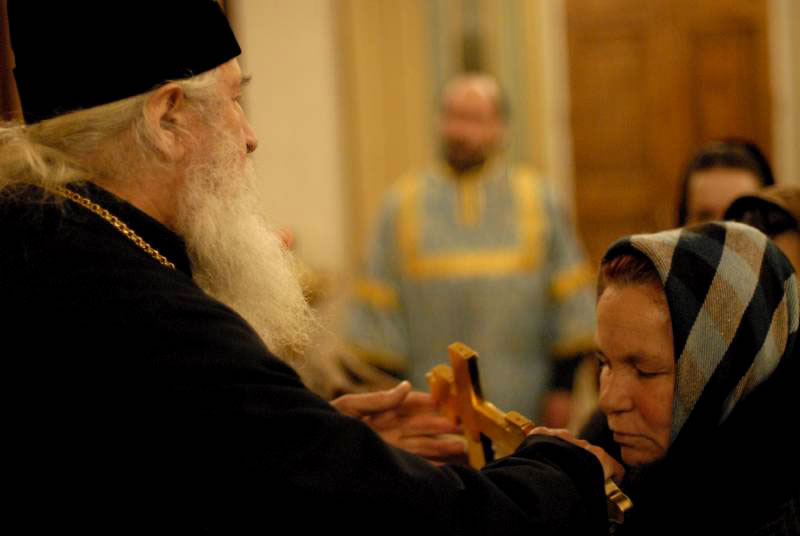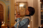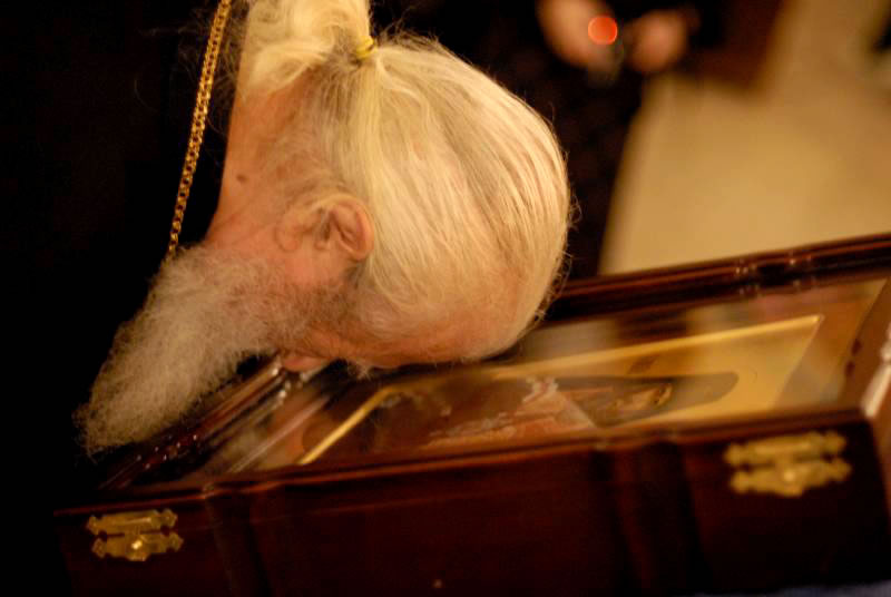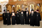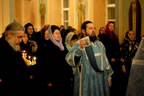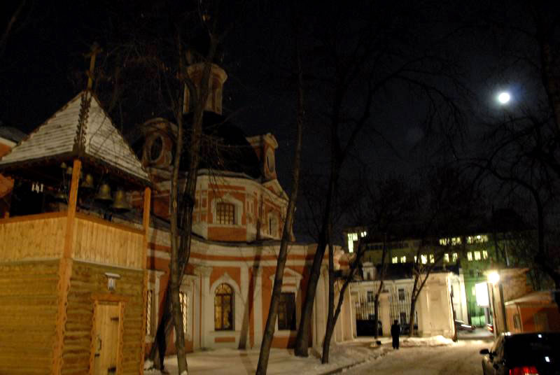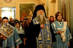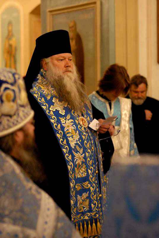 On the evening of Wednesday, February 20, 2008, His Eminence Metropolitan Laurus and the delegates of the Russian Orthodox Church Outside of Russia visited Moscow's St Catherine Representation Church of the Orthodox Church in America. Here His Eminence was ceremoniously greeted by Archimandrite Zacchaeus (Wood), and the clergy and parishioners of St Catherine. His Grace Bishop Peter of Cleveland then, together with the church clergymen, performed a moleben to the Most-Holy Mother of God, St Catherine the Great Martyr and St John (Maximovich) of Shanghai and San Francisco before an icon of the holy bishop, which recently had a relic of his uncorrupt and healing relics installed. This icon was given as a gift to Fr Zacchaeus by His Eminence Archbishop Kyrill of San Francisco and Western America. A moleben is performed here weekly to St John, who is more and more venerated by the Muscovite faithful.