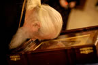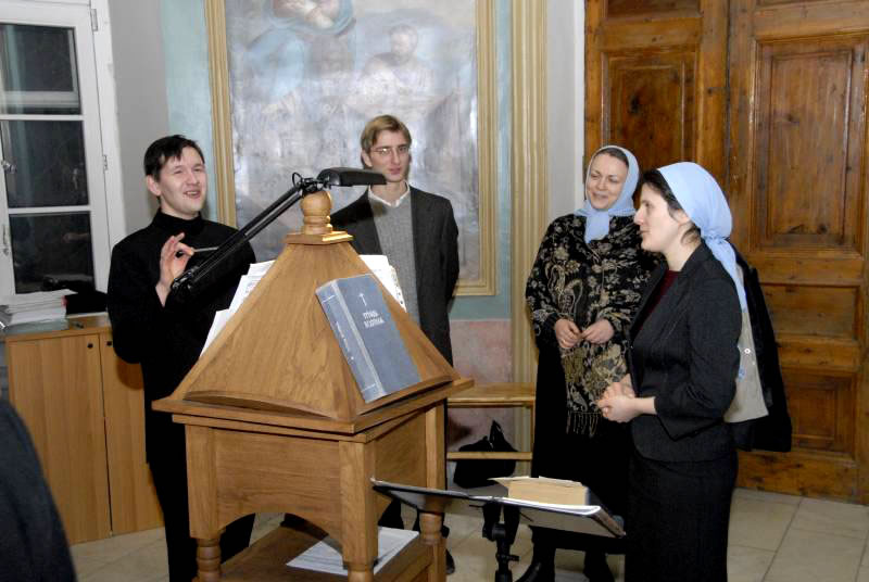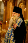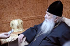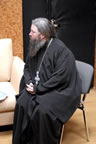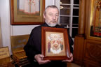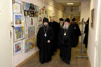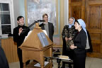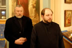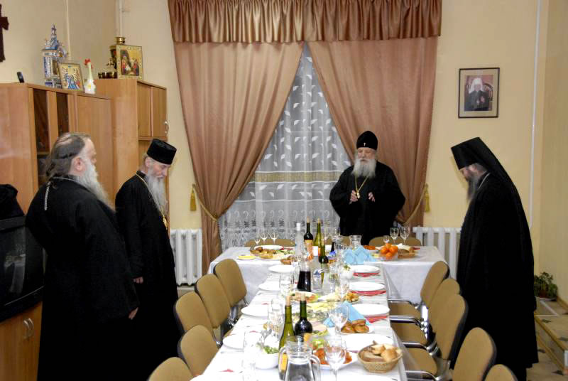 At the end of the service, Archimandrite Zacchaeus welcomed the First Hierarch of the Russian Orthodox Church Outside of Russia and gave His Eminence an icon of "The Lamb of God." In his response, Vladyka Laurus invoked God's blessing upon Fr Zacchaeus, the clergymen, parishioners and worshipers of St Catherine's Church. As Many Years was sung, His Eminence Metropolitan Laurus blessed everyone with the cross. Afterwards, the delegation of the Russian Church Abroad visited the nearby shop Tserkovniye tkani ["Church Fabrics"]. During the trapeza that followed, held in a warm and gregarious atmosphere, greetings were read by Metropolitan Laurus, His Eminence Archbishop Mark of Berlin and Germany, His Grace Bishop Gabriel of Manhattan, Bishop Peter, Fr Zacchaeus, Protopriest Serafim Gan, Protodeacon Joseph Jarostchuk and Protopriest Victor Lochmatov as well as St Catherine's clergymen.